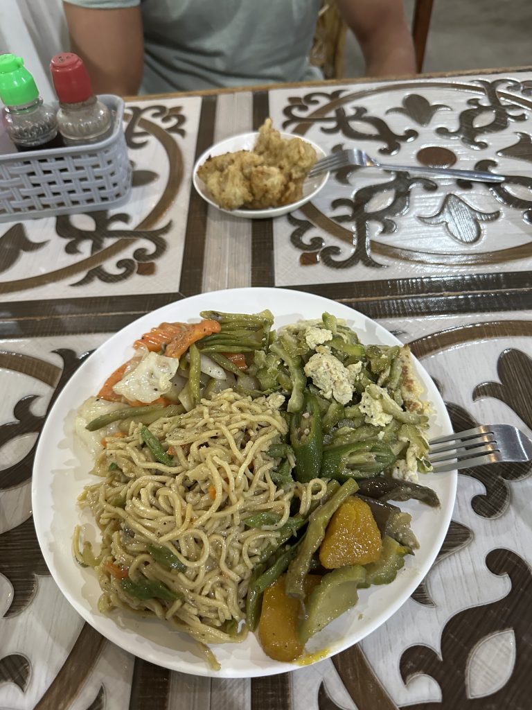 Dann hab es eben Scrambled Egg und Veggie-Pancit (gebratene Eiernudeln mit Gemüse). Das war wirklich sehr lecker und machte uns satt. Am Ende schmeckt uns das lokale Essen dann doch immer etwas besser, als die western dishes.