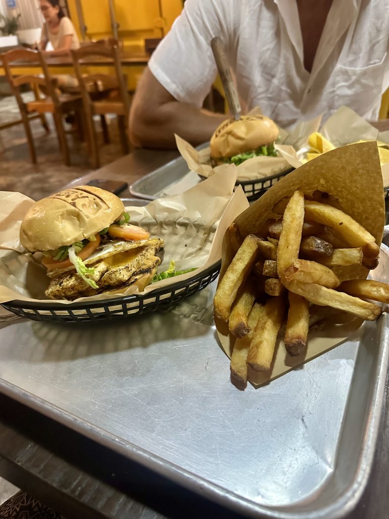 Am Abend wollten wir uns dann mal richtig was gönnen und sind Burger essen gegangen. Burger hatten wir tatsächlich seit Lombok (Anfang Oktober!) nicht mehr. Doch genau gegenüber unseres Hotels war ein richtiges Burger Restaurant – das bot sich also förmlich an 😄