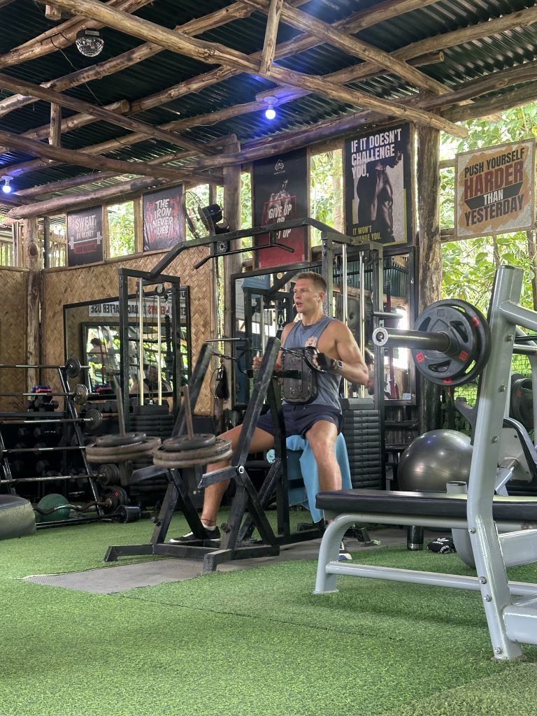 Ganz vergessen zu erwähnen: Natürlich haben wir auch in El Nido wieder ein cooles Gym gefunden, in dem wir trainieren konnten. Für 100 Peso (ca. 1,60€) stemmten wir unsere Gewichte hier in einem Local Outdoor-Gym. Der Inhaber war super freundlich und tatsächlich einer der ersten auf unserer gesamten Reise, der sich sogar für das Training interessiert und mehrmals Hilfe angeboten hat. Herzallerliebst 🙃 Außerdem gab es hier Proteinpulver in Portionsgröße für 40 Peso – BESTE!