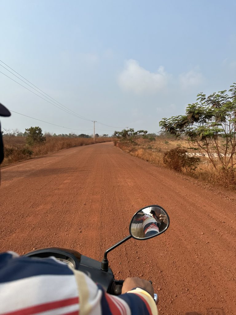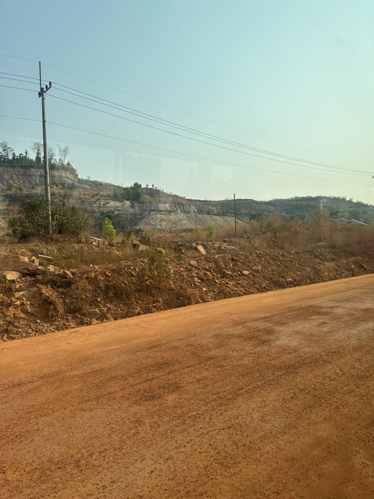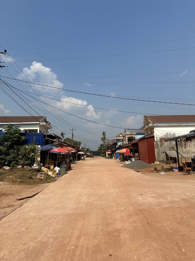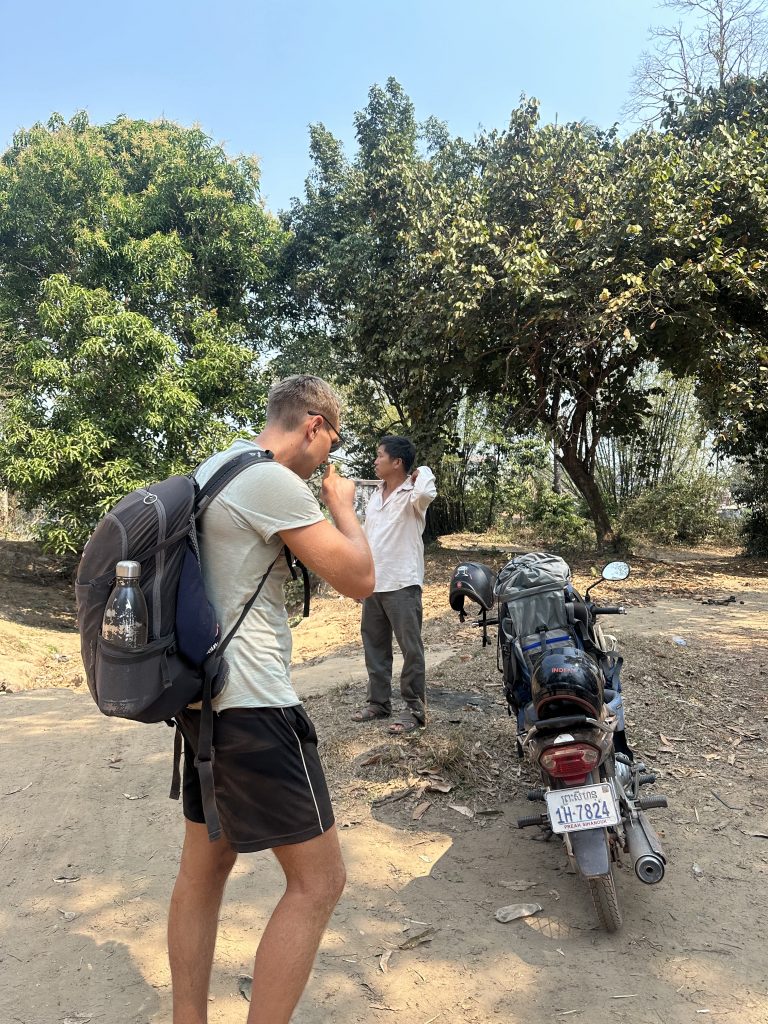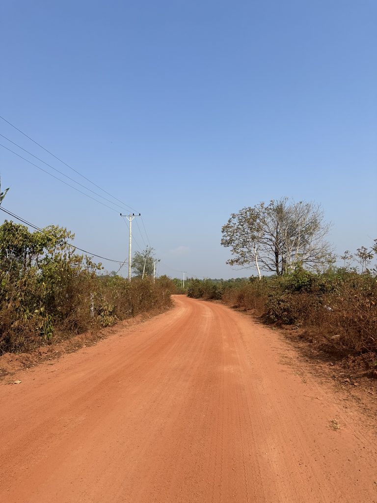 Den Nachmittag haben wir genutzt um die nähere Umgebung rund um Chi Phat zu erkunden. Es ging den roten Sandweg in der sengenden Hitze entlang; die Erde glühte förmlich. Fun Fact: Nati sendete genau zur gleichen Zeit ein Foto vom Schnee in Hamburg – so ein krasser Kontrast! 😅