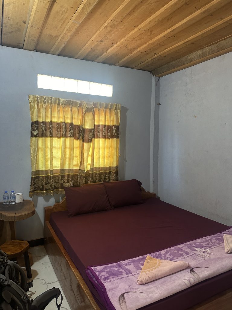 Wir konnten zwischen verschiedenen Unterkünften wählen: Bungalow, Guesthouse mit/ohne AC oder einem Homestay, bei dem wir einfach in einem Zimmer bei einer Familie schlafen würden. Hierfür haben wir uns entschieden und schliefen so in einem kleinen, aber sauberen Zimmer für 10$ die Nacht.