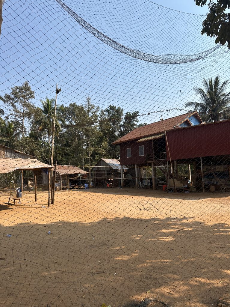 Das Dorf Chi Phat liegt am Fluss. Von dort führt eine rote Staubpiste weiter ins Inland; links und rechts gibt es ein paar Shops und Häuser. Kinder spielen auf der Straße, Hunde liegen im Schatten oder streunern herum. Es gibt wenige Autos, viele Roller, aber auch ein paar Fahrräder. Auf dem kleinen Volleyballplatz spielen Jugendliche. Man merkt: hier ticken die Uhren noch ganz anders. Charakteristisch für Kambodscha: der rote Sand. Du hast ihn wirklich überall. Und so sind auch in den Häusern innen die Ritzen mit rotem Sand voll 😅