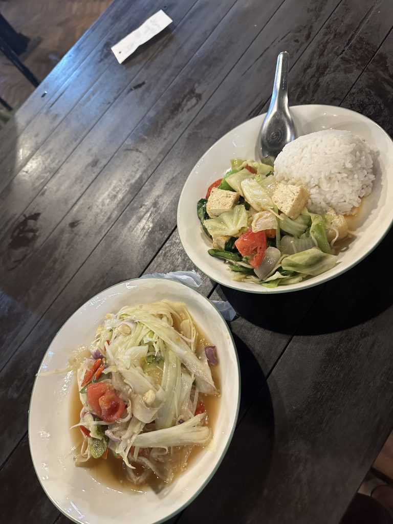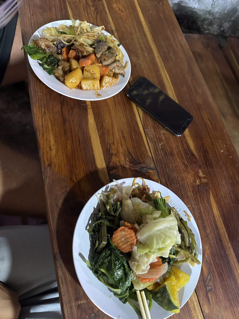 Ansonsten gab es noch Crispy Pork, Papaya Salad, Veggies mit Tofu, Potato Stick und Fresh Spring Rolls – ein abschließendes Schlemmen durch Laos Küche.