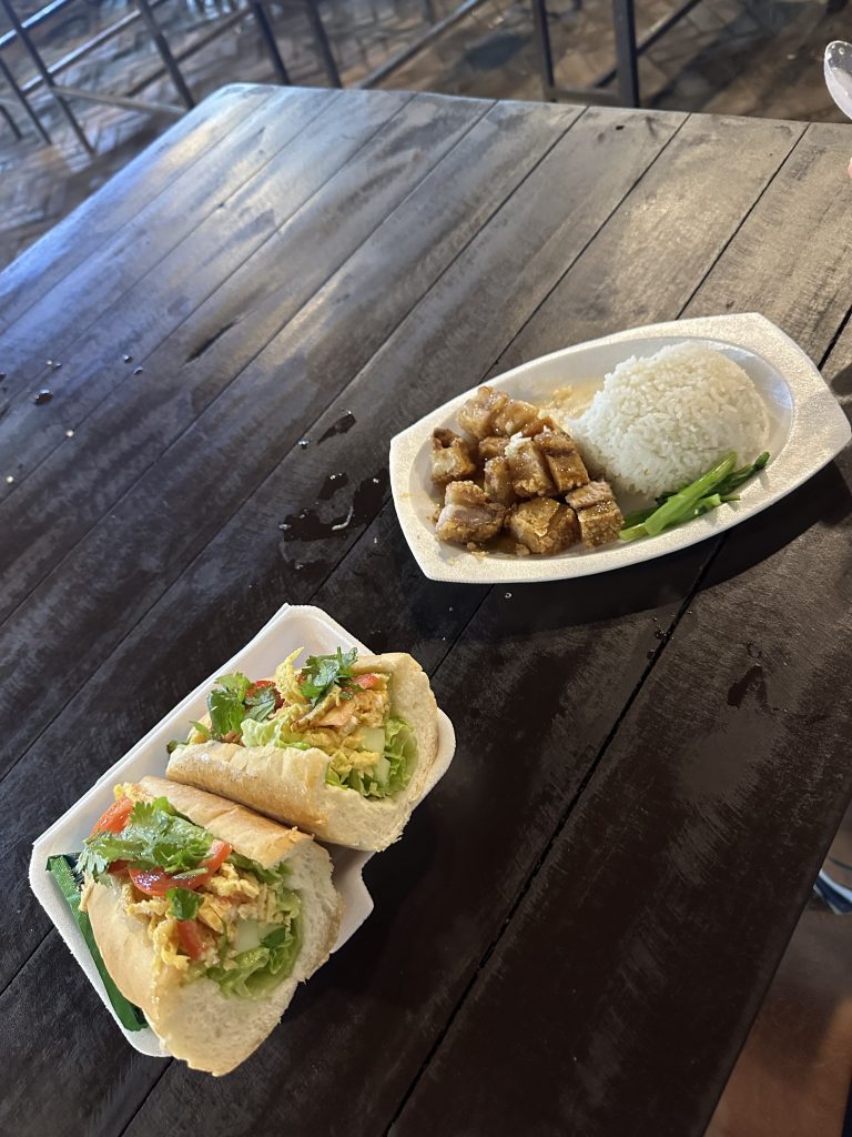 Jetzt musste es endlich sein, denn unser letzter Tag in Laos war gekommen: wir wollten das berühmte Lao Sandwich probieren, den Croque im Asia-Style. Auf dem Nachtmarkt gab es glücklicherweise einen kleinen Stand und so probierten wir die Sorte Veggies & Egg. Und: es schmeckt. Trotz weißem Baguette 🤣 Durch den Salat und die Veggies schmeckt es schön frisch, das Ei (im Omelette Style) macht das ganze würzig und Sauce und Koriander bringen asiatischen Geschmack dazu. Kann man also machen.
