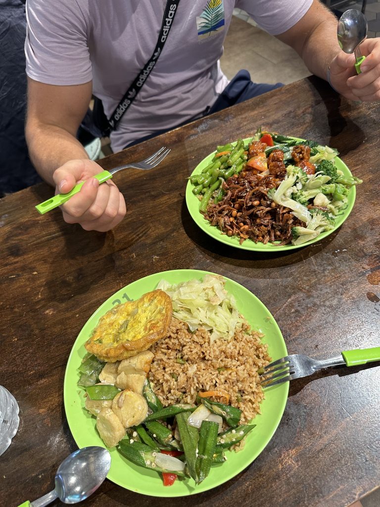 Das Essen ist natürlich extrem fleischlastig, aber es gibt auch viel Gemüse. Eiweißquellen ohne Fleisch findet man eher schwer; wenn dann Tofu.