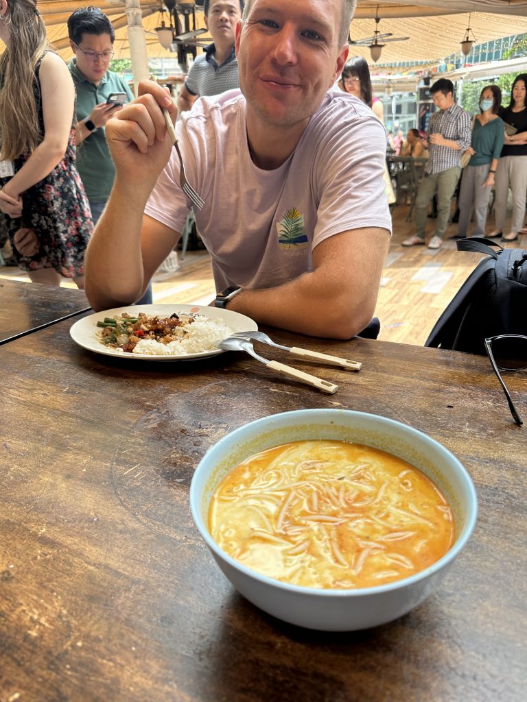 Außerdem konnte ich endlich das Nationalgericht Singapurs, die Laksa-Suppe probieren. Eine Suppe aus Kokosmilch und Chili mit Reisnudeln. Schmeckte sehr interessant!