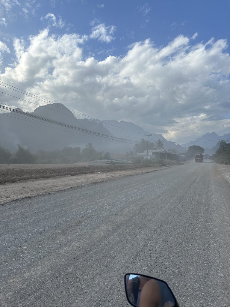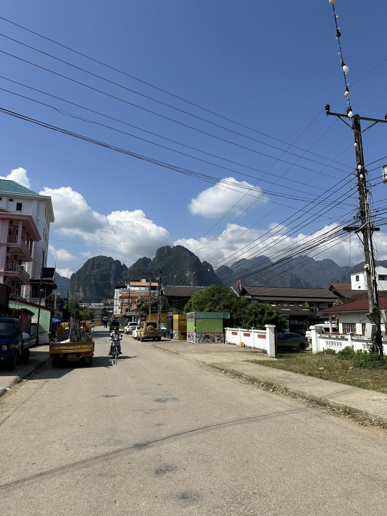 - Viel Verkehr: Ihr kennt es mittlerweile von uns – wir mögen nicht so gerne viel Verkehr 😂 Durch Vang Vieng führt aber halt leider nur eine Hauptstraße und so ist diese eigentlich den ganzen Tag befahren. Möchte man irgendwo zu Fuß laufen, muss man immer aufpassen, dass man nicht von einem Pick-up, der die nächste „Fuhre“ Touristen zum nächsten Spot fährt, umgefahren wird. Das nervt.