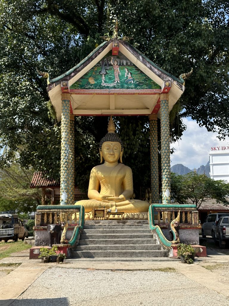 Freddy und ich sind hier zum ersten Mal etwas unterschiedlicher Meinung. Freddy fand Vang Vieng zu voll, laut, staubig und stickig mit dem Verkehr. Grundsätzlich mag er aber auch die Natur, die Lagunen und vor allem, dass man überall so schnell hinkommt.