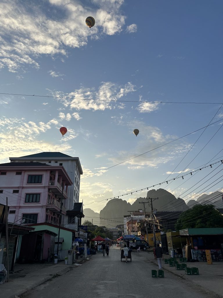 Eingebettet zwischen beeindruckenden Karstbergen und dem malerischen Nam Song Fluss liegt Vang Vieng. Ein Ort, der Naturfreunde und Abenteurer gleichermaßen begeistert. Einst war der Ort bei Backpackern beliebt, wodurch sich hier eine rege Partyszene entwickelte. Doch die Zeiten sind vorbei; mittlerweile versucht man mehr Abenteuer- und Outdoor-Touristen anzuziehen. Durch die gute Anbindung über den Laos-China-Railway ist der Ort vor allem auch bei Chinesen beliebt.