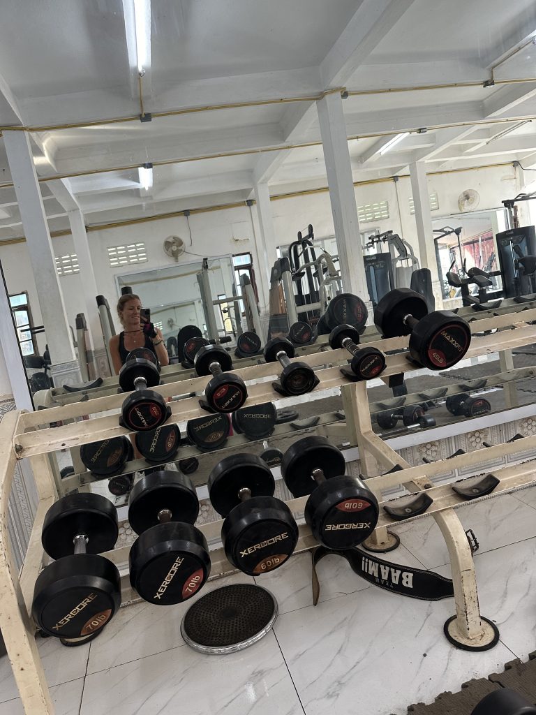 In Vang Vieng gibt es ein Gym, in dem man für 40k Kip (ca. 1,75€) trainieren kann. Das Studio ist ordentlich ausgestattet und man könnte perfekt den Push-Pull-Leg Split fahren 😏
