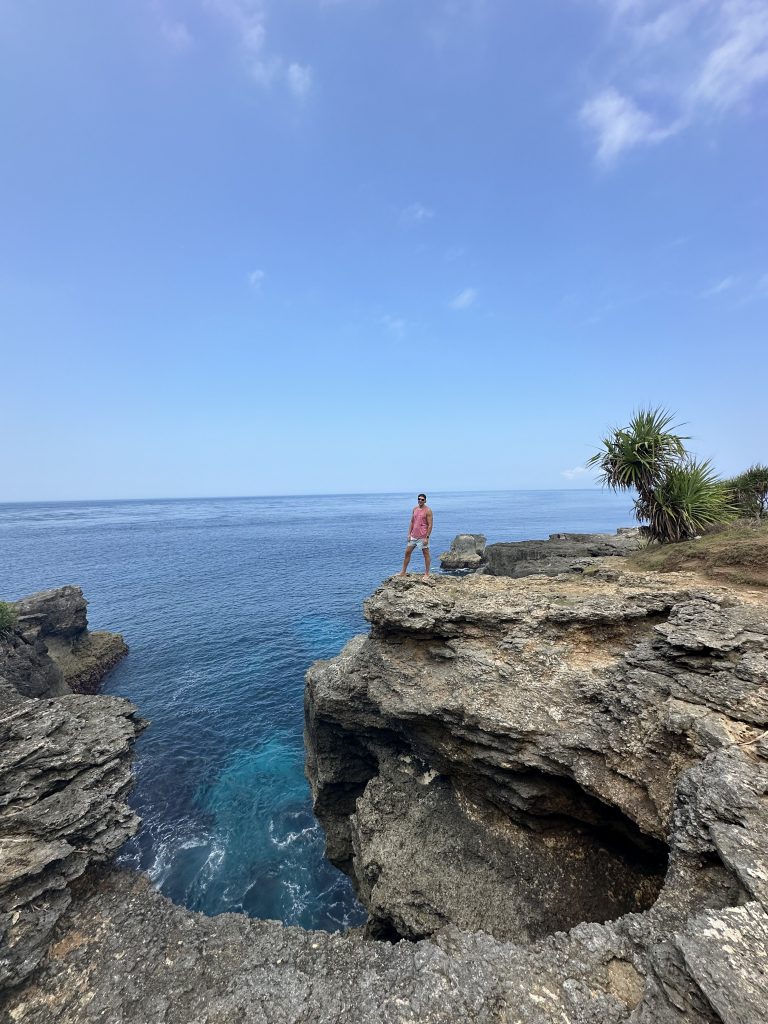 Zwischen Nusa Lembongan und Nusa Penida liegt noch die kleine Insel Nusa Ceningan. Die Insel ist vielleicht ein Drittel von Lembongan und ist mit dieser über die sogenannte Yellow Bridge verbunden. Von unserem Bungalow haben wir einen herrlichen Ausblick auf die Brücke.