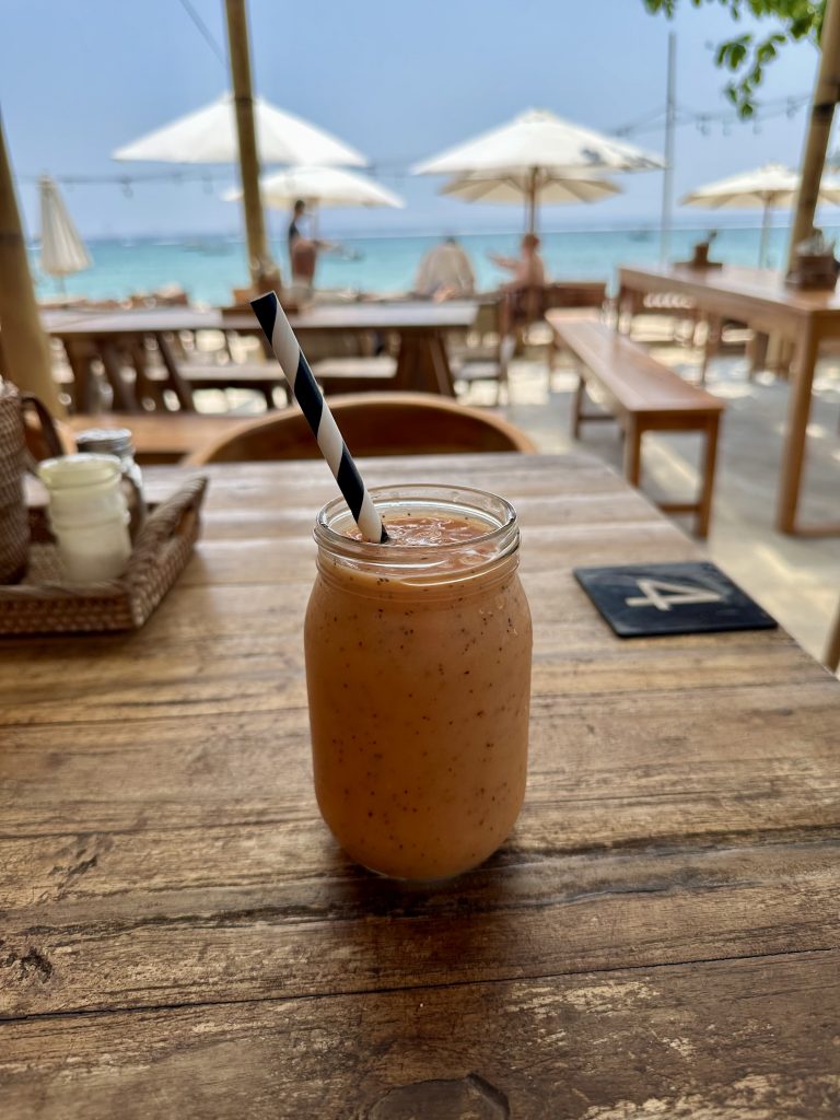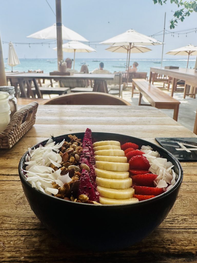 Zurück auf Lembongan waren wir noch einmal im Hauptort der Insel Jungutbatu. Der Strand ist leider voll mit Booten und daher nicht so zum Baden geeignet. Für eine Mittagspause mit Fruitshake und Smoothie-Bowl aber ideal. Die Strandlokale sind hier (leider) alle auf den australischen Tourismus ausgelegt und bieten wenig lokale Küche an. Stattdessen findet man hier Burger, Pizza, Pommes und eben Smoothie Bowls 😒 Genau so eine haben wir uns dann auch schmecken lassen, wenn man krank ist, braucht man Vitamine!
