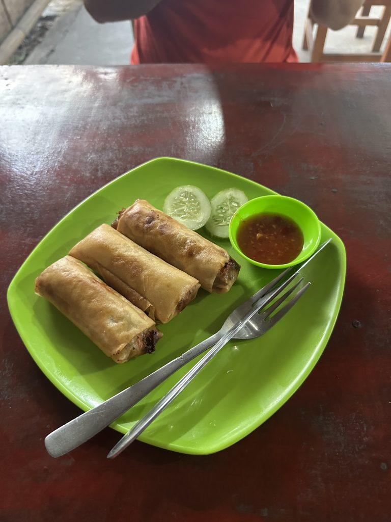 Zum Abendessen waren wir dann aber lieber wieder in einem kleinen Warung und haben uns Springrolls, Tofu Curry und Nasi Campur schmecken lassen 😋