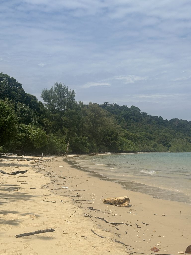 Ein schöner einsamer Sandstrand an der Ostseite der Insel. Leider wird hier super viel Müll angespült, und bei Flut kann man richtig sehen, wie der Müll im Wasser schwimmt und langsam immer näher kommt. Schade, aber das ist leider überall auf der Welt ein riesiges Problem.