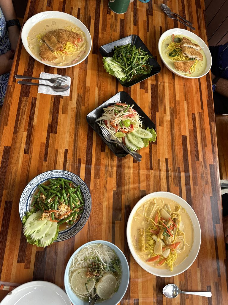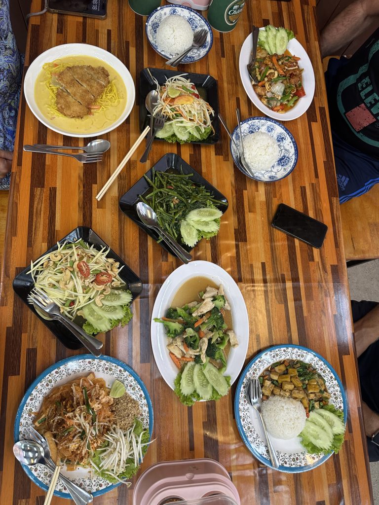 Die Empfehlung der anderen: Spaghetti mit Thai Curry – richtig lecker. Wir hatten Panang Curry und es war wirklich richtig gut. Und das erste Mal Pasta für uns! Außerdem lecker entdeckt: Mango Salad 😋 Danke Papa! ❤️