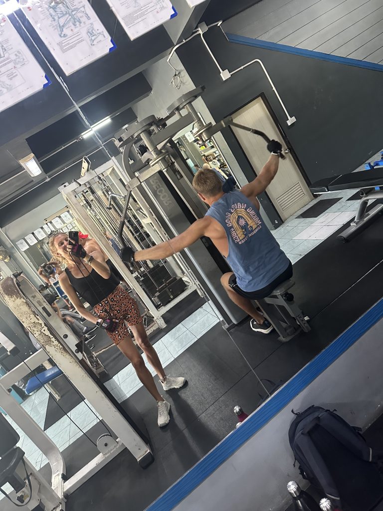 In Khao Lak gibt es genau ein Gym. Und das ist super klein, super alt, ranzig, dreckig… und teuer 😂 Aber wie sagt man so schön? No pain, no gain! Und so haben wir uns für 900 Baht zu zweit eine Wochenkarte gekauft und waren jeden Morgen trainieren! Am Ende geht es immer wunderbar und alles was hart ist, macht uns nur stärker. Außerdem lieben wir dieses Gym-geteste ja total 🤭