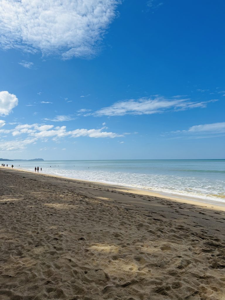 Einmal waren wir dann doch noch am anderen Strand. Am Bangsak Beach sind wir nach einem Mittagessen einfach mal losgelaufen mit dem Ziel an die Spitze zu kommen; das war am Ende länger als erwartet und so waren wir insgesamt 10 km unterwegs. Und die Spitze sah in echt gar nicht so nice aus, wie aus der Ferne 😂 Aber wir konnten von dort das elterliche Resort auf Koh Kho Khao sehen!