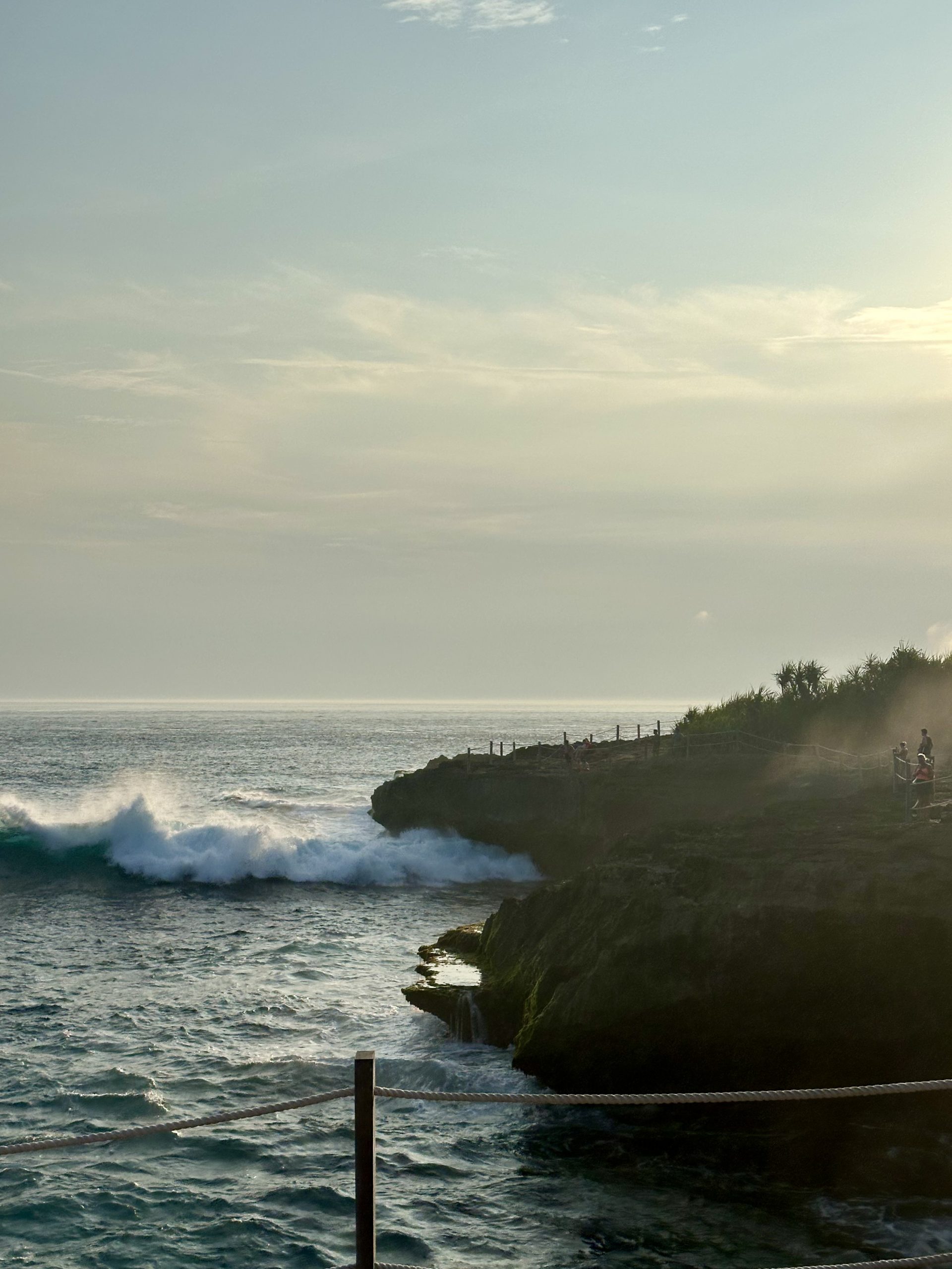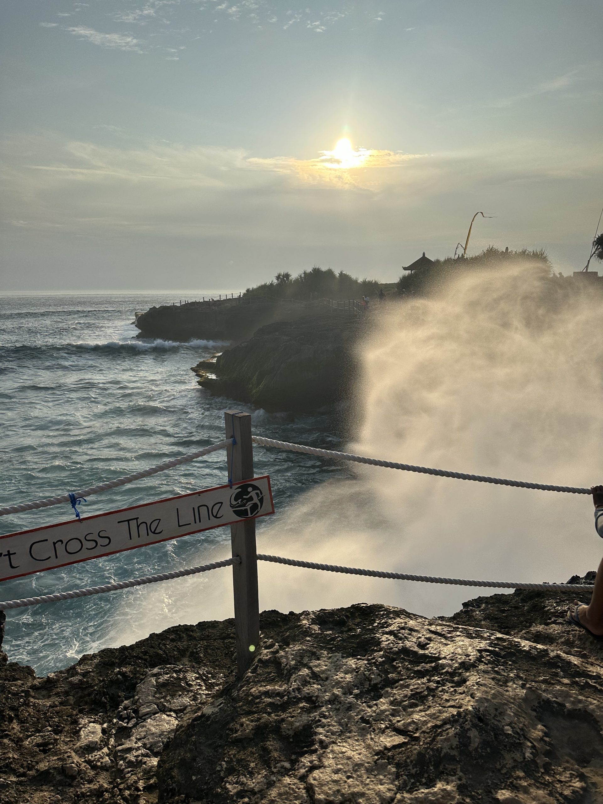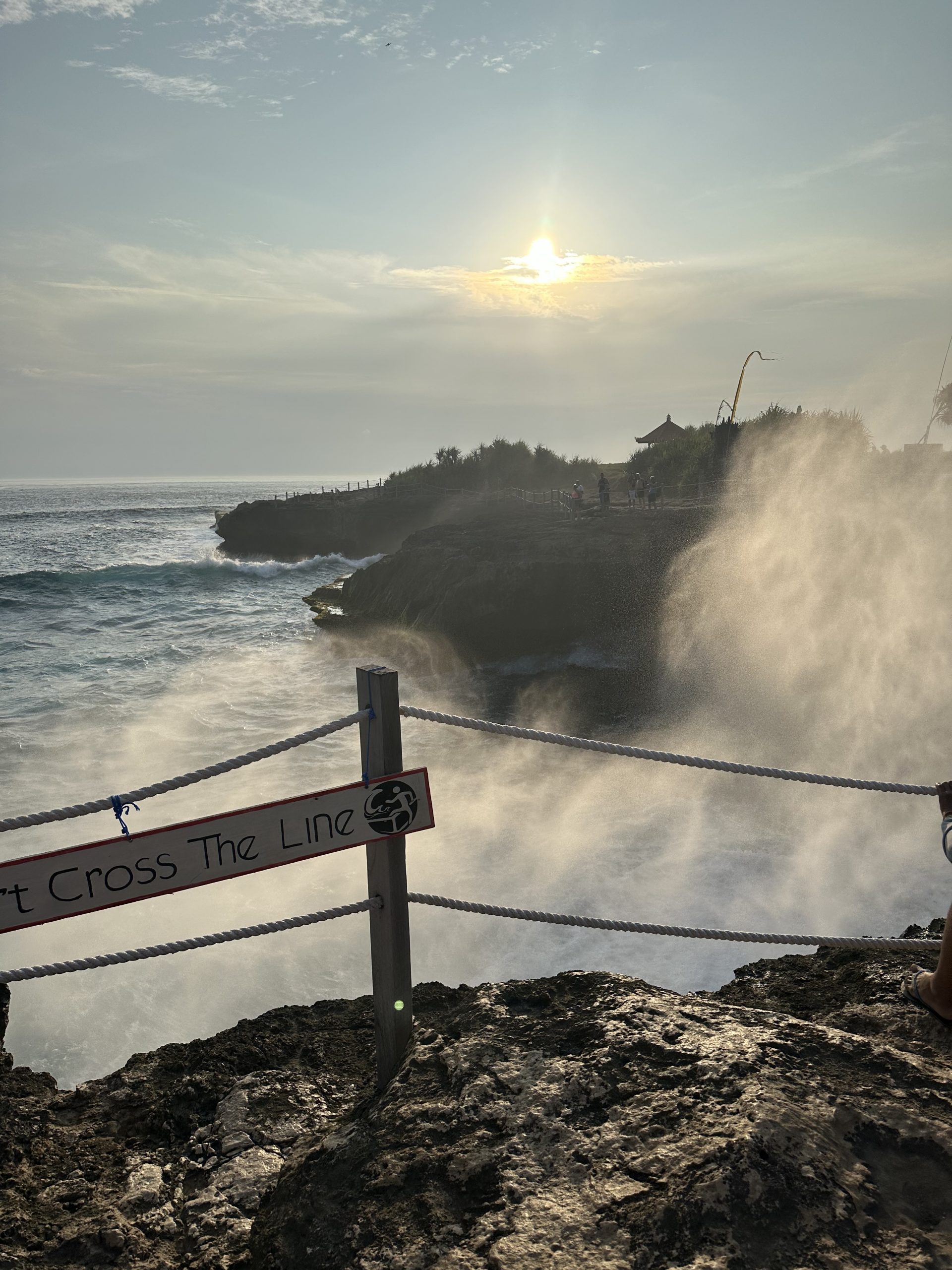Als wir das erste Mal 2016 hier waren, gab es hier noch überhaupt nichts. Kein Zaun, kein Warung, wirklich gar nichts. 2018 hatten sich dann schon einige Shops um den Spot angesiedelt und auch viele Touristen waren da. Und nun, weitere 6 Jahre später, ist das Gebiet eingezäunt, man muss Eintritt zahlen und die Klippen sind mit einem Seil abgesperrt. Denn leider waren einige Touristen in den letzten Jahren zu wagemutig und sind abgestürzt… Fürs Auge tut das aber leider nichts.