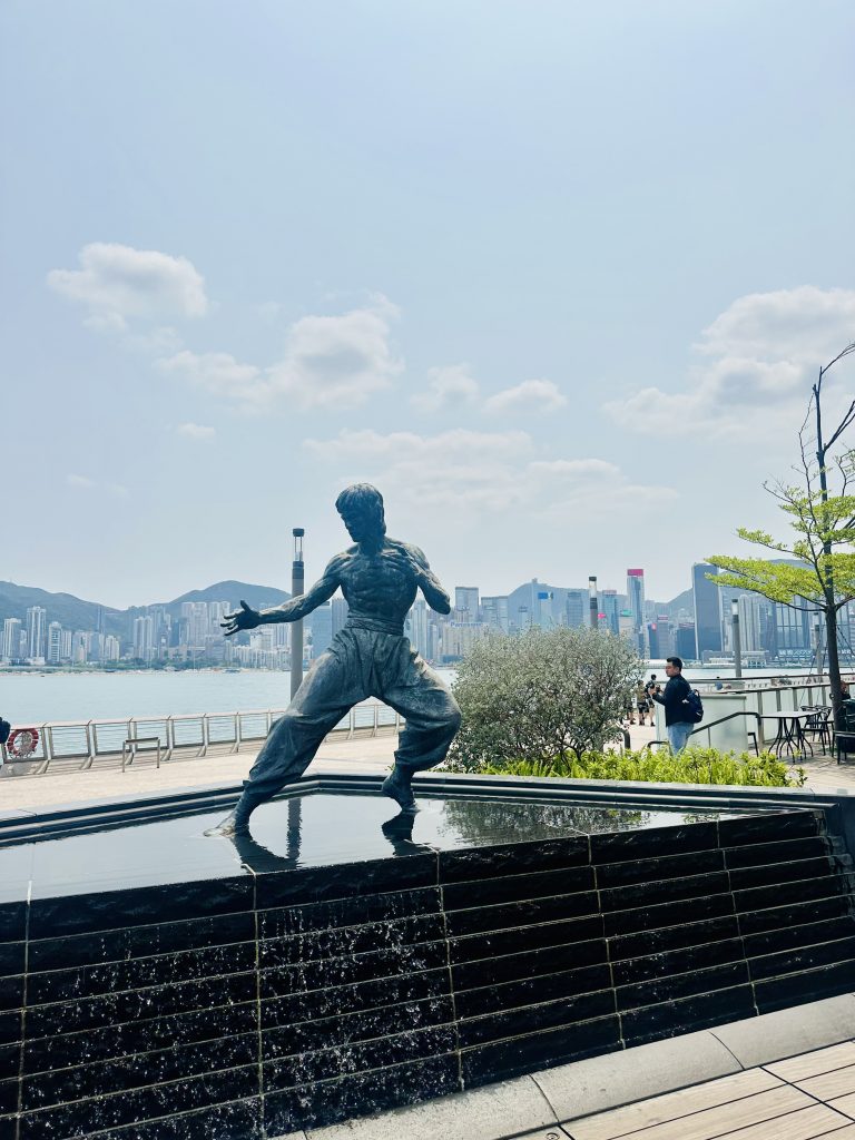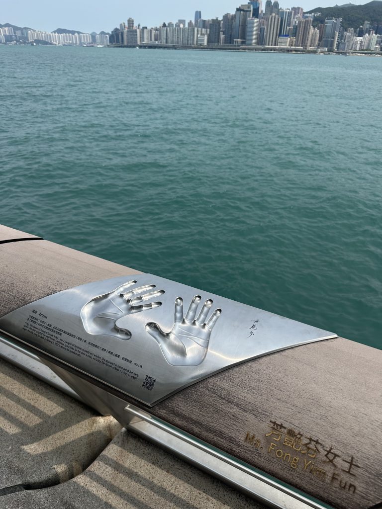 Die Avenue of Stars liegt an der Promenade des Victoria Harbour und ehrt die vielen Schauspieler Hong Kongs. Ähnlich wie der Walk of Fame in L.A. hat auch hier jeder Schauspieler seinen eigenen Ehrenplatz, nicht in Form eines Sterns, sondern mit seinem Handabdruck an der Reling zum Wasser. Bruce Lee hat natürlich eine ganze Statue 😁
