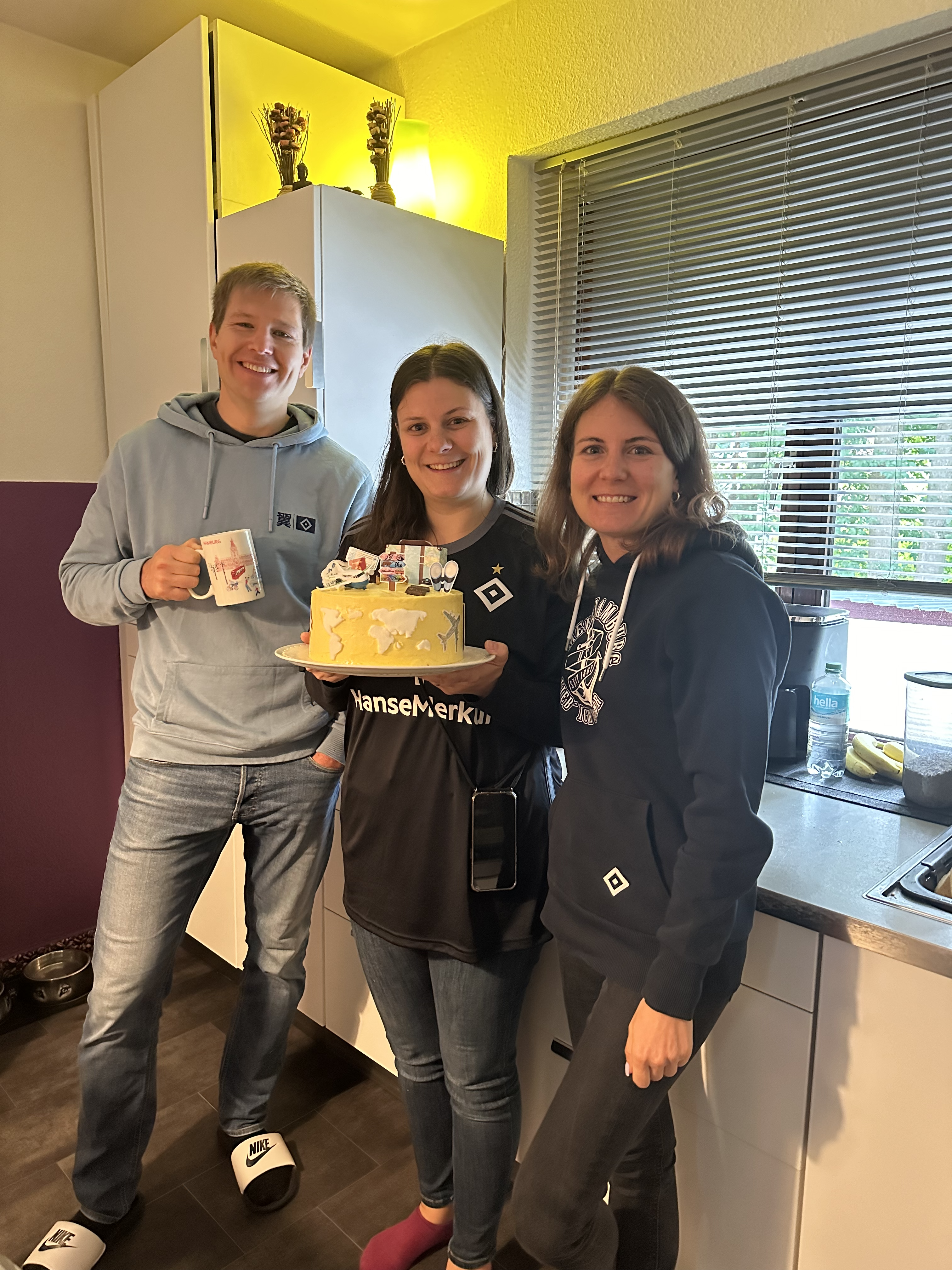 Aber nochmal von vorne: Gestern fand nämlich unsere Abschiedsfeier mit unseren liebsten statt. Außerdem waren wir das letzte mal für eine sehr lange Zeit in unserem Wohnzimmer im Volksparkstadion 💙 Der HSV hat uns schon mal gebührend mit einem 5:0 verabschiedet; da durften wir nochmal ordentlich unseren (bzw. genau genommen Papas) Schal wedeln!