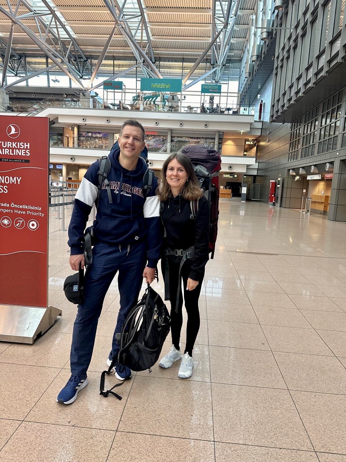 Jetzt sitzen wir im Flieger von Hamburg nach Istanbul und können gerade selbst noch gar nicht so richtig realisieren, dass wir nun die kommenden Monate einfach unterwegs sein werden. Und vor allem nicht, dass wir euch alle gerade am Airport zum letzten Mal für längere Zeit gesehen haben – wir vermissen euch jetzt schon!