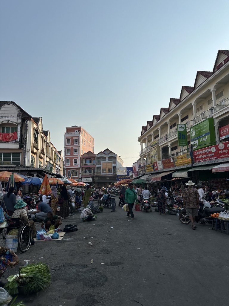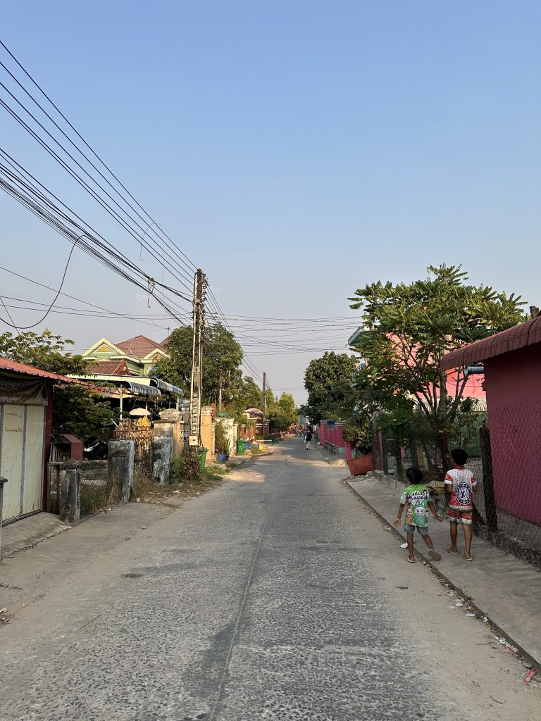 Hinter der Grenze nehmen wir uns ein TukTuk und fahren für 15k Riel (4000 Riel = 1 USD) zum Hotel.