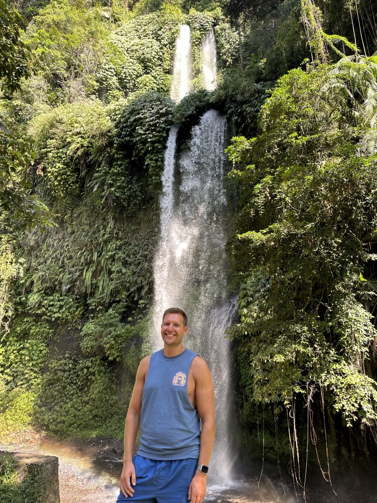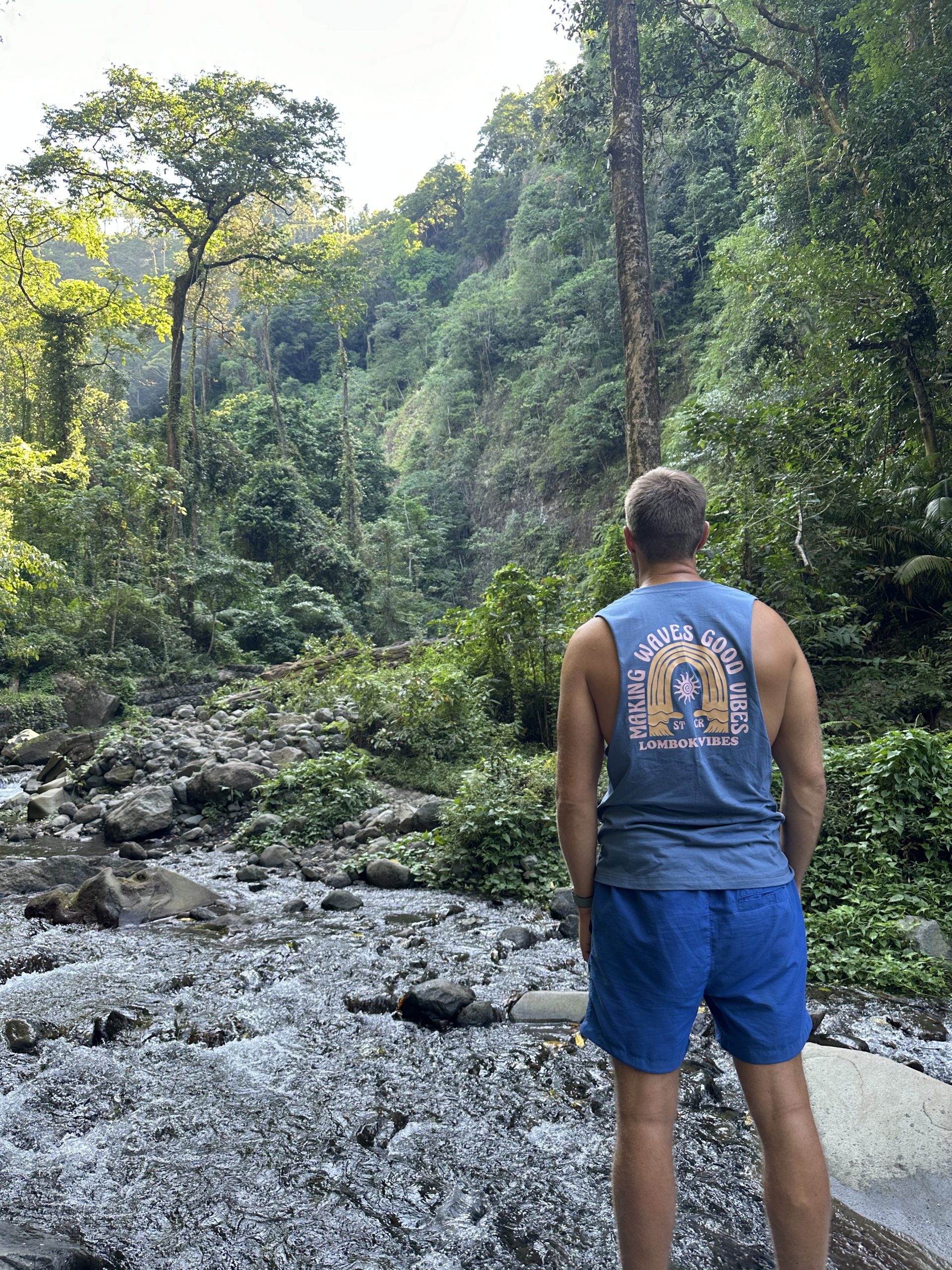 Zum zweiten Wasserfall Kiu Telep muss man nochmal ca. 30 Minuten durch den Dschungel wandern. Dabei mussten wir auch zweimal ein Flussbett durchqueren; gut, dass Freddy diesmal Turnschuhe anhatte 🤣 Halt immer so wie man es nicht braucht…