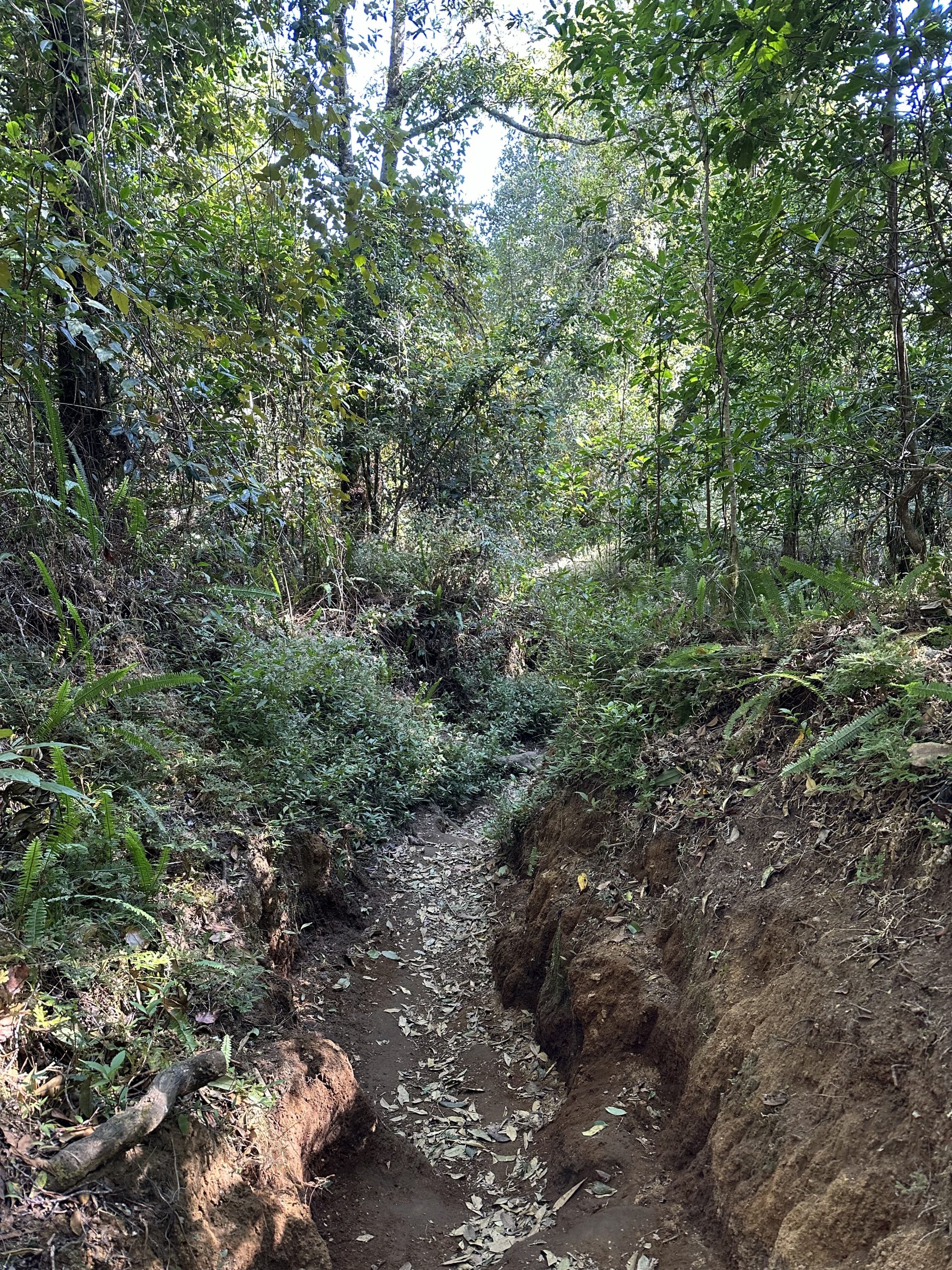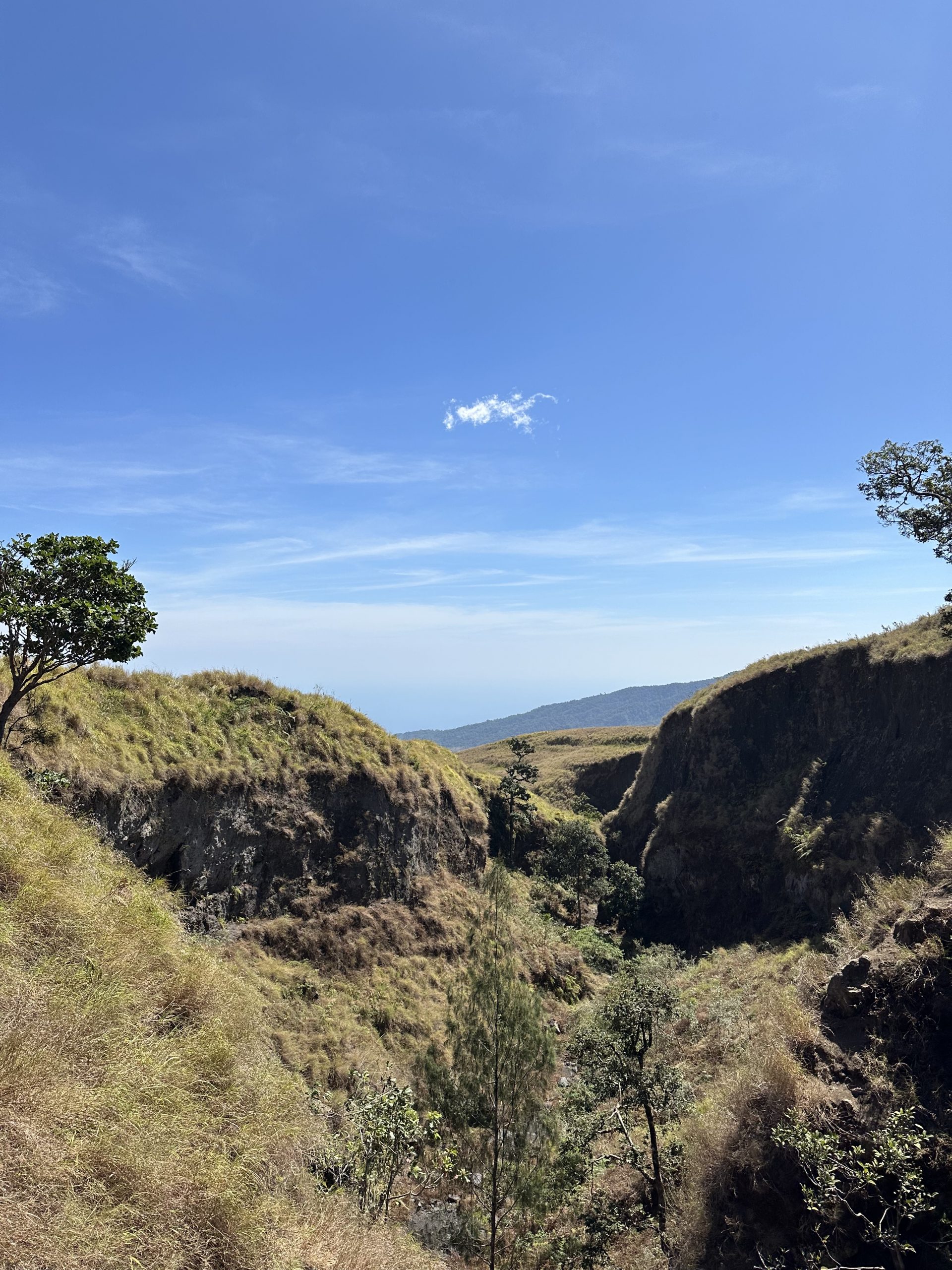 Am letzten Tag ging es nach einem guten Frühstück wieder zurück nach Senaru. Das sind nochmal über 2.000m im Abstieg. Der Weg verläuft moderat steil erst durch Savannen-ähnliches Gebiet, was wieder eine wirklich sehr staubige Angelegenheit ist – man sollte unbedingt ein Tuch oder so dabei haben. Die letzten zwei Stunden führen dann durch dichten Dschungel.