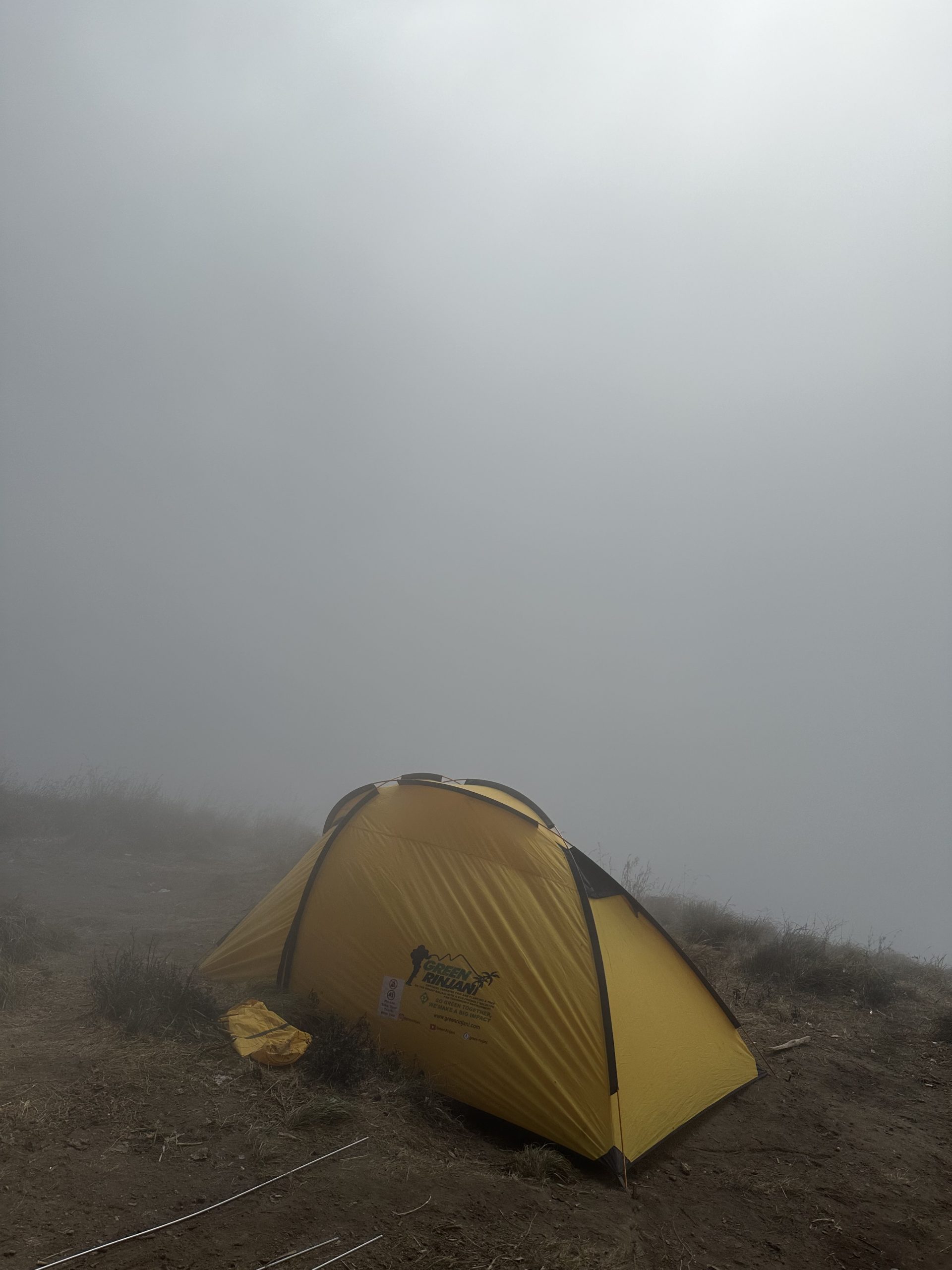 Wir hatten einen super Zeltplatz in erster Reihe am Crater Rim, am Abend nur keine Aussicht; denn wir waren in den Wolken. Das Beste, was ein Porter dann machen kann? Ein heißes Curry servieren, wenn es gerade so richtig kalt wird. Das schmeckte einfach fantastisch und hat dazu super gewärmt. Im Anschluss ging es dann für uns auch schon gegen 19 Uhr ins Zelt – denn für den Aufstieg zum Gipfel sollten wir um 2 Uhr schon wieder aufstehen.