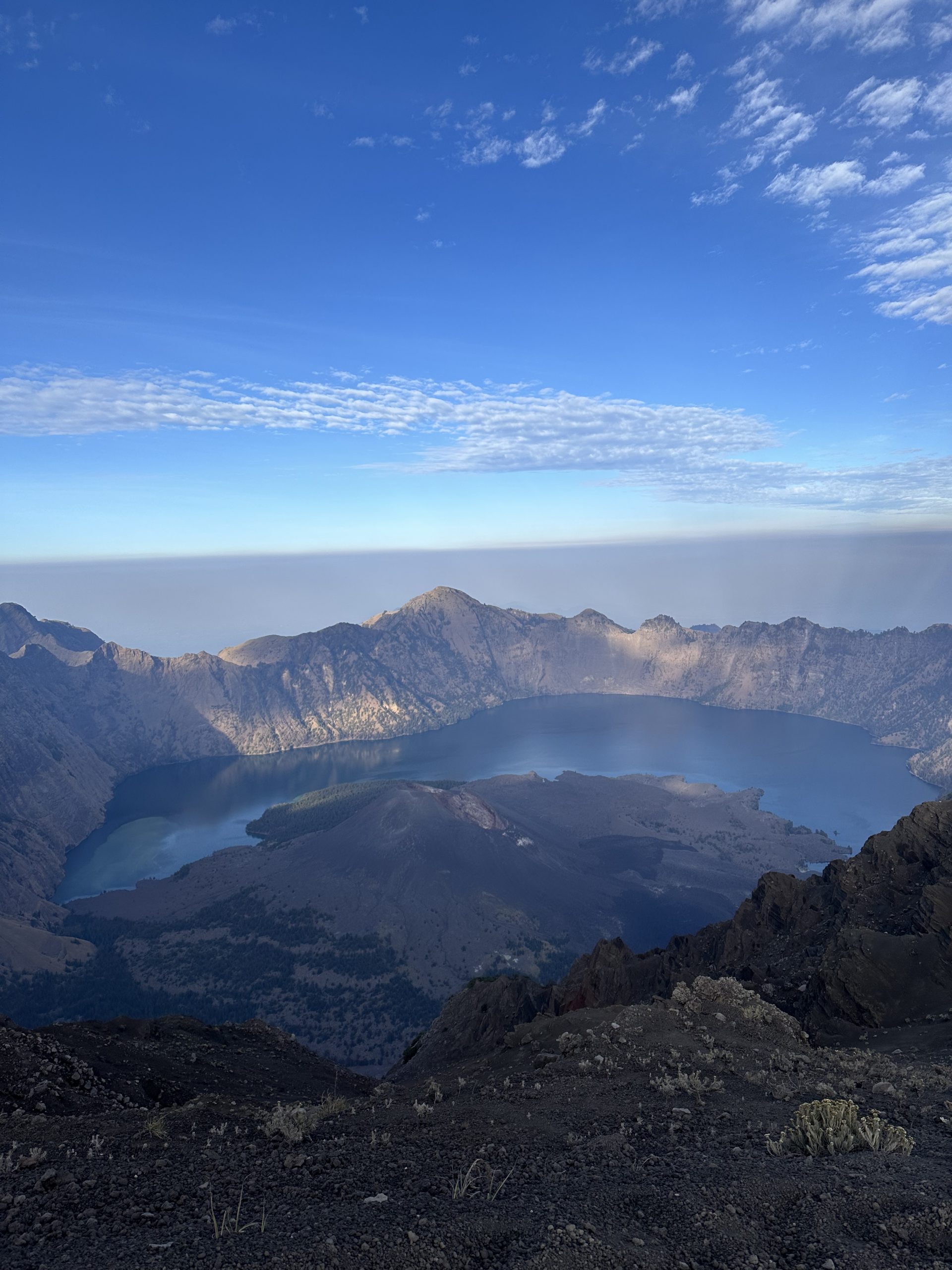 Vom Gipfel hast du einen grandiosen Ausblick auf ganz Lombok, den Kratersee und die Berge. Ich hab mich gefühlt als hätte ich gerade den Mount Everest bestiegen, Freddy als wäre er bis auf den Mond gewandert 😄