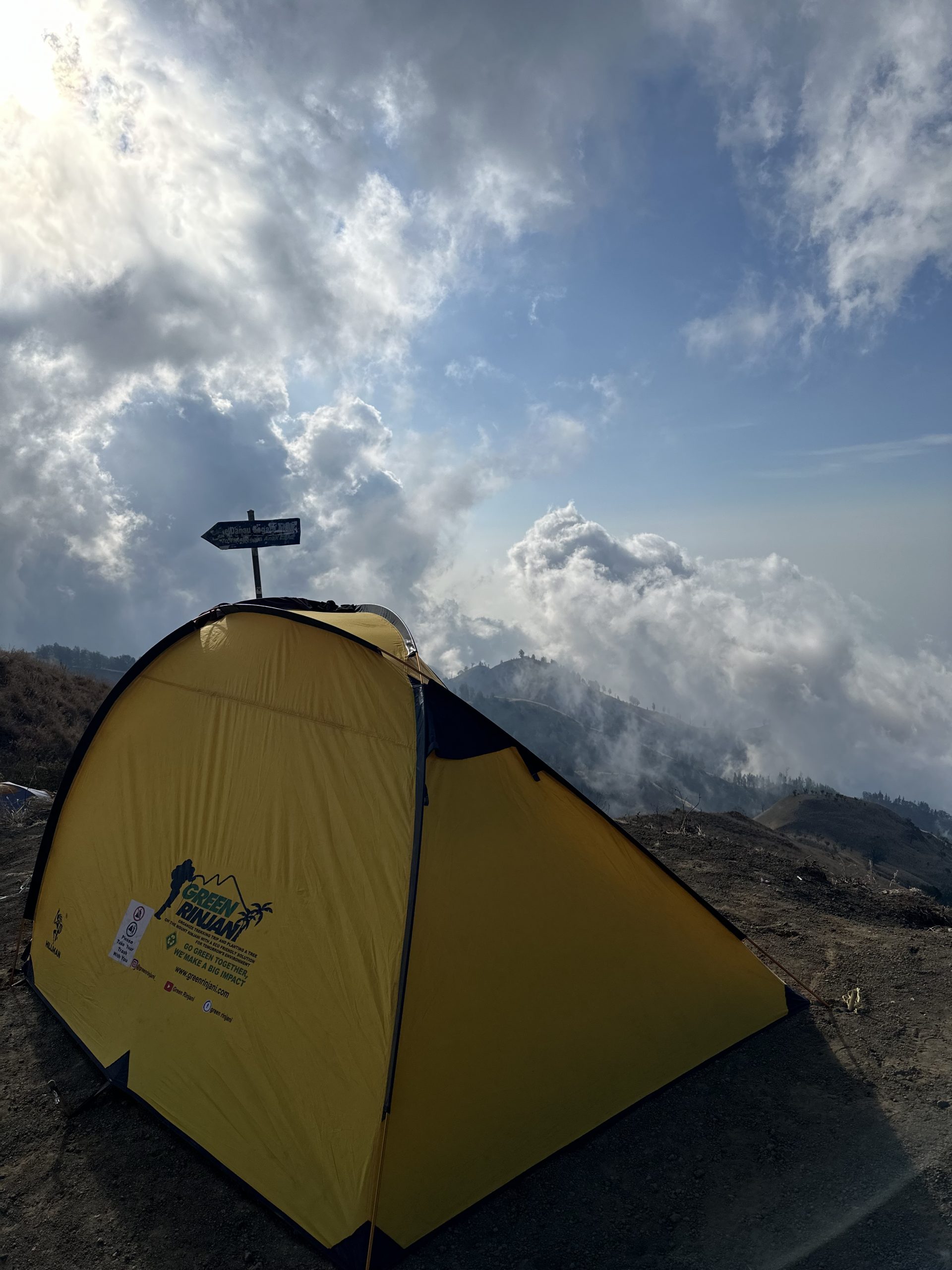 Nach ca. zweieinhalb Stunden purer Anstrengung inkl. Klettereinheiten haben wir es dann geschafft und sind im Camp für die zweite Nacht angekommen. Unser Zelt stand schon auf einer kleinen Ebene mit bester Aussicht auf den Norden von Lombok. Dieses Camp war deutlich kleiner und es kam uns so vor, als wenn es nur für bestimmte Gruppen war.