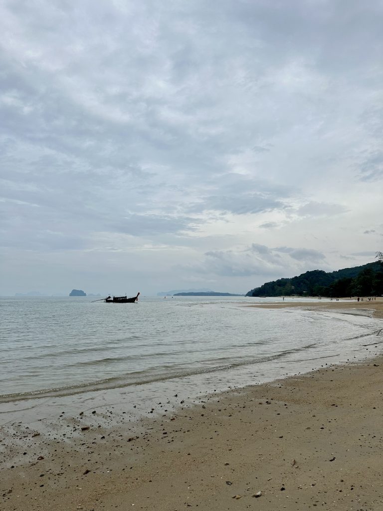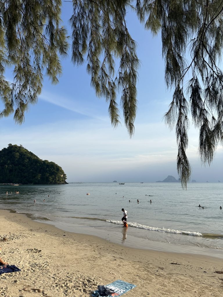 Klong Muang ist ein Ort weiter westlich an der Küste und direkt so viel ruhiger als Ao Nang. Der Strand ist schön breit, feiner Sand mit schöner Aussicht auf die vorgelagerten Inseln. Hier lässt es sich gut entspannen. Außerdem kann man super gut am Strand spazieren gehen.