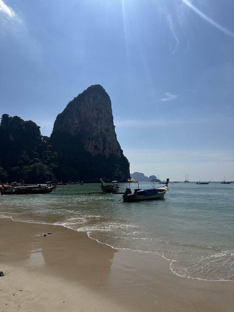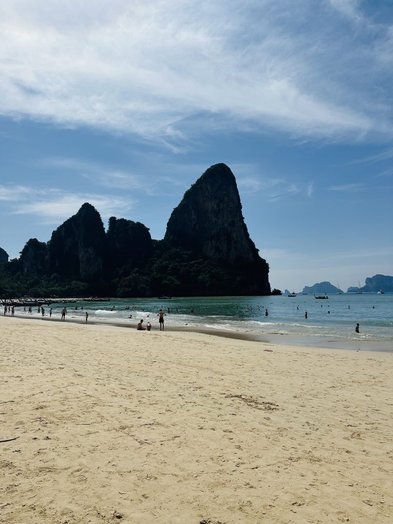 Der Railay Beach ist sicherlich einer der bekanntesten und beeindruckendsten Strände Thailands. Umgeben von steilen Kalksteinfelsen bietet der Strand die perfekte Postkartenidylle. Er ist nur per Boot zu erreichen, was ihn noch ein bisschen besonderer macht. Rüber kommt man mit dem Longtailboot eigentlich dauerhaft vom Ao Nang Beach. Das Return Ticket kostet 200 Baht pro Person. Am Railay Beach gibt es kaum Liegen, so dass hier somit noch ein bisschen Ursprünglichkeit bewahrt wird. Uns hat das sehr gut gefallen.