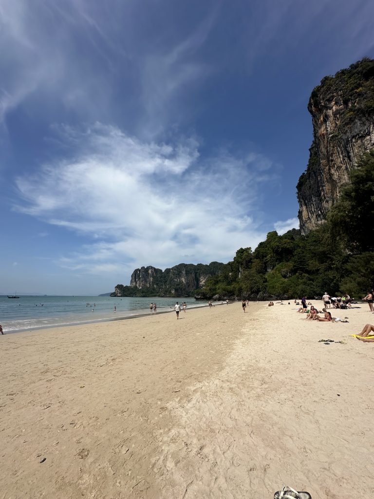 Der Pai Plong Beach liegt östlich von Ao Nang und kann nur über den sogenannten Monkey Trail erreicht werden. Vom Ostende des Ao Nang Beaches gelangt man in etwas 10-15 Minuten den privaten Strand, an dem genau ein Resort steht. Man muss sich in eine Liste eintragen, der Zugang ist aber kostenlos. Der Strand ist auch sehr schön von Kalksteinfelsen umgeben, so dass sich eine einmalige Kulisse bietet. Uns hat es hier super gut gefallen, vor allem weil es auch nicht so voll war. Natürlich ist auch hier nur Sand und man kann wunderbar baden. Einzig störend: die Longtail-Taxis zum Railay Beach fahren Nonstop vorbei, so dass man quasi keine Ruhe hat… aber das ist Meckern auf hohem Niveau.