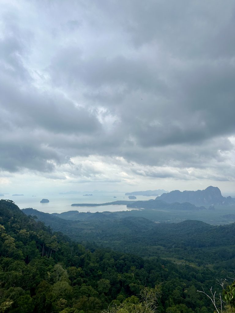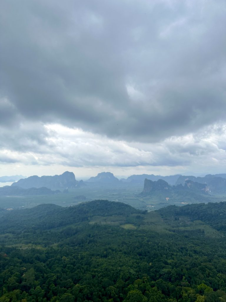 Am letzten Tag, und damit schon nach Weihnachten, waren wir im Khao Ngon Nak Nationalpark wandern. Die Wanderung verlief super schön durch Dschungel den Berg hinauf. Über Stock und Stein, war es teilweise auch richtig anspruchsvoll. Wir waren auf jeden Fall froh, dass wir unsere Wanderschuhe anhatten. Für 5 km geht es ca. 620 Höhenmeter hinauf. Und dann steht man auf einmal selbst auf einem dieser Kalksteinfelsen, die Krabi so einzigartig machen. Leider hat es genau als wir oben waren angefangen zu regnen. Dadurch hatten wir dann auch keine so gute Aussicht, weil der Himmel wolkenverhangen und diesig war. Schön war es trotzdem!