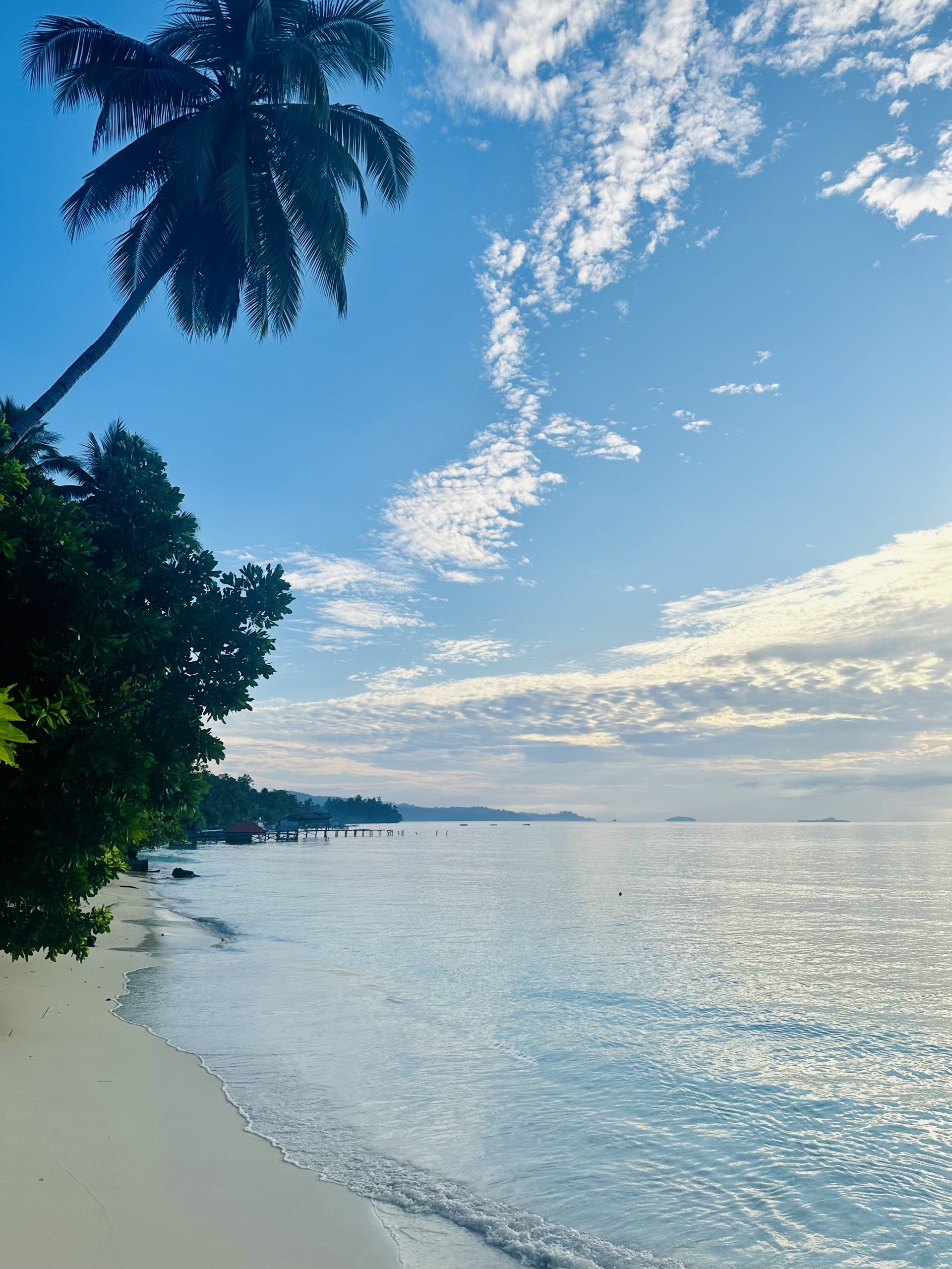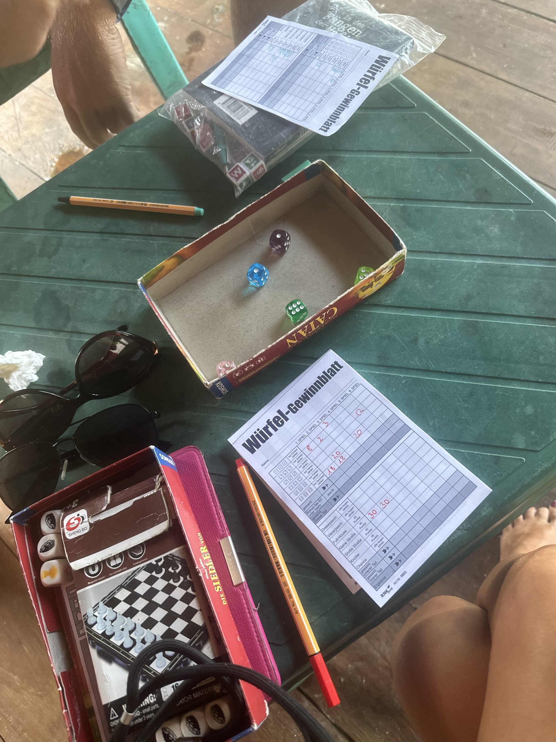 Jeder der schon länger auf Reisen war, weiß, dass es zwischendurch auch ganz schön anstrengend sein kann. Auch wenn man so viel Zeit hat wie wir, will man doch jeden Tag irgendwie ausnutzen. Zumal wir so abenteuerlustig sind und auch viel erleben wollen. Manchmal braucht man daher auch wieder Pausen, um so richtig zu entspannen. Und so kamen uns die 6 Tage an diesem einsamen Strand super gelegen. Denn außer schnorcheln, sonnen, essen, baden, spielen und Sport, kann man hier nicht viel machen. Und so hatten wir ganze sechs Tage pure Entspannung. Das Schöne: Wir waren von unseren Nächten tatsächlich auch vier ganz alleine in dem Homestay. Für zwei Nächte leistete uns dann Karin Gesellschaft, einer Solo-Travellerin aus Krefeld – war auch ganz nett.