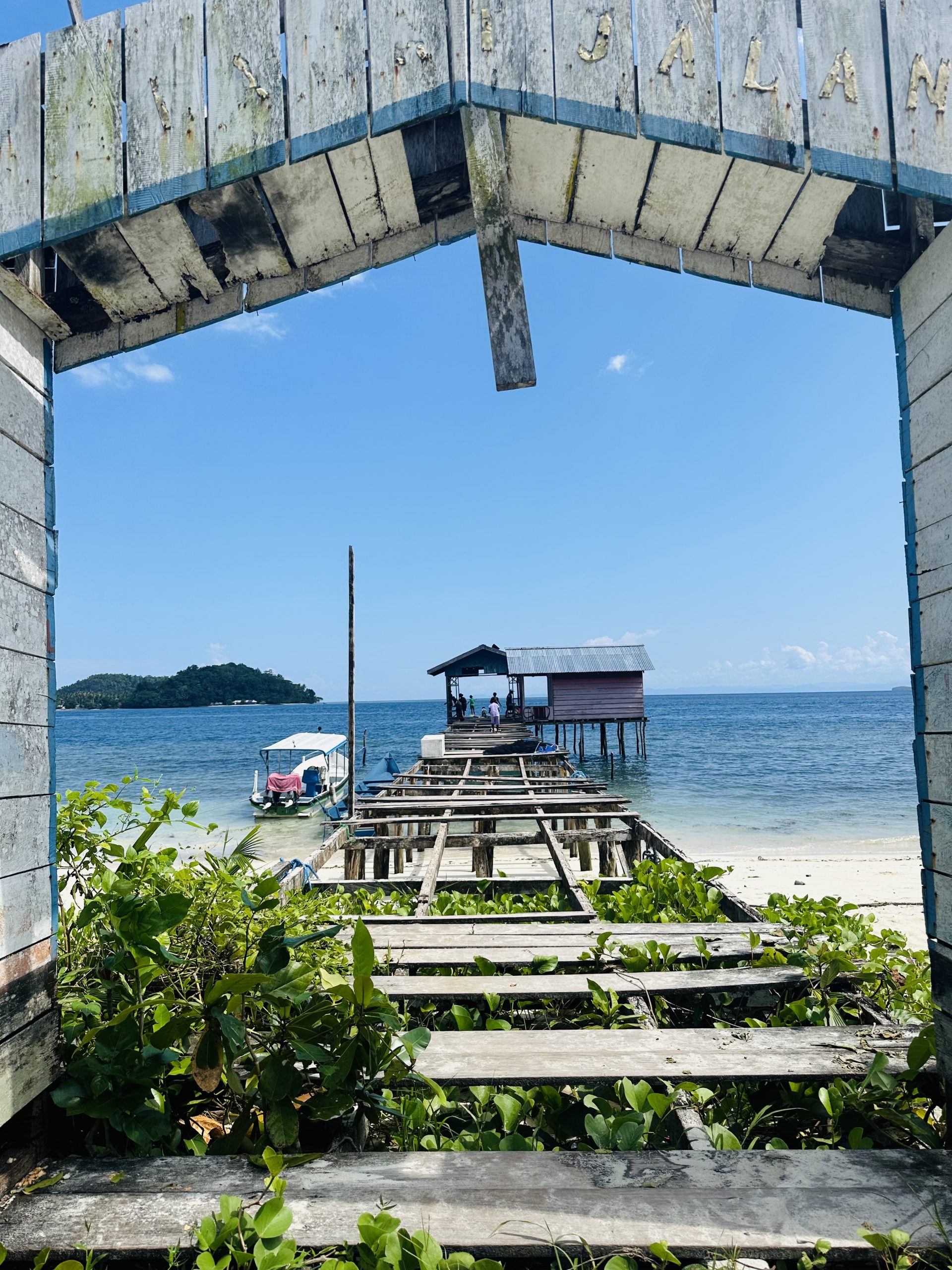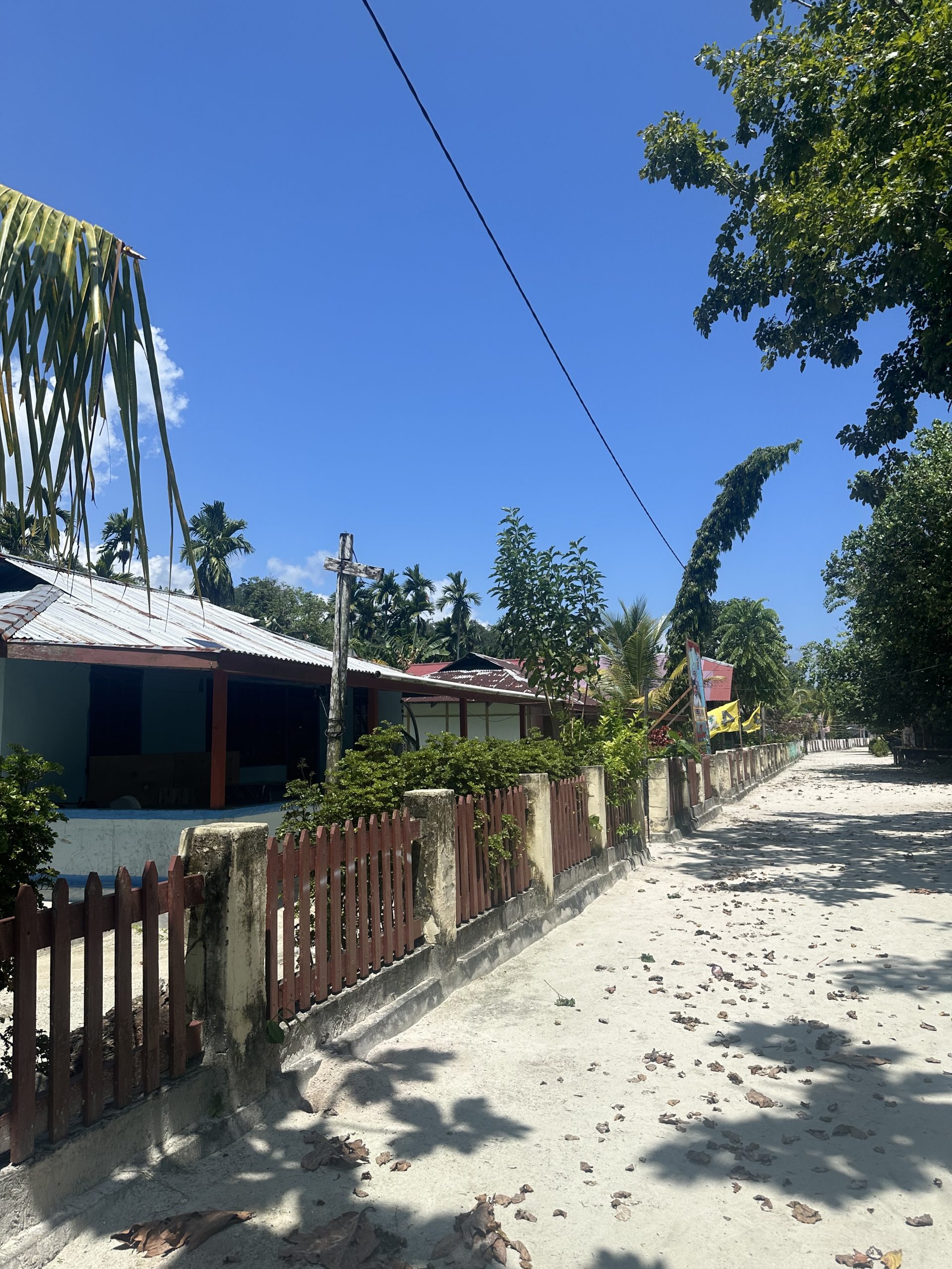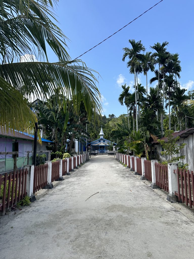 Keine fünf Minuten Fußweg von unserem Homestay liegt das kleine Dorf Yenbesar. Hier gibt es eine Schule, eine Kirche und auch zwei Mini-Shops, bei denen du dir Cola oder Kekse kaufen kannst. Die Bewohner waren alle total freundlich und jeder grüßt und lächelt. Das Dorf ist in zwei Teile unterteilt, wobei der westliche Teil etwas einfacher aus normalen Hütten besteht. Über einen Steg gelangt man zum östlichen Teil, der deutlich “schicker” wirkt: die Häuser sehen richtig ordentlich aus und haben Veranda und Vorgarten. Ganz am Ostende gibt es noch eine Lagune mit tollem grünen Wasser.