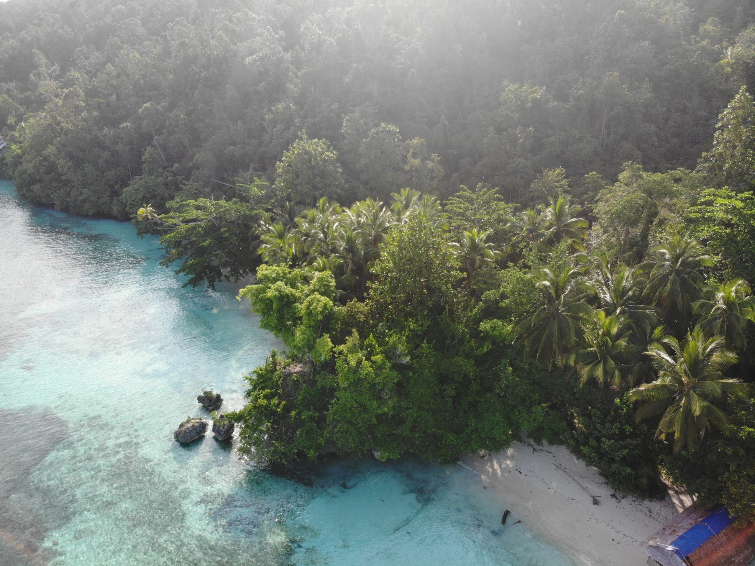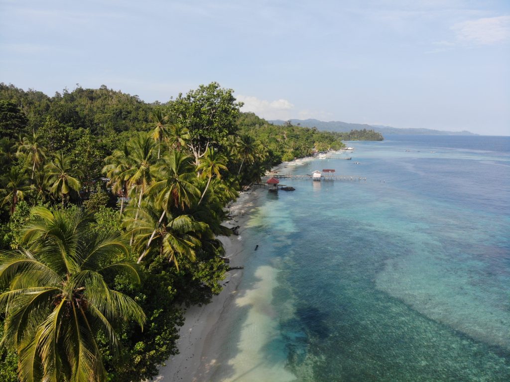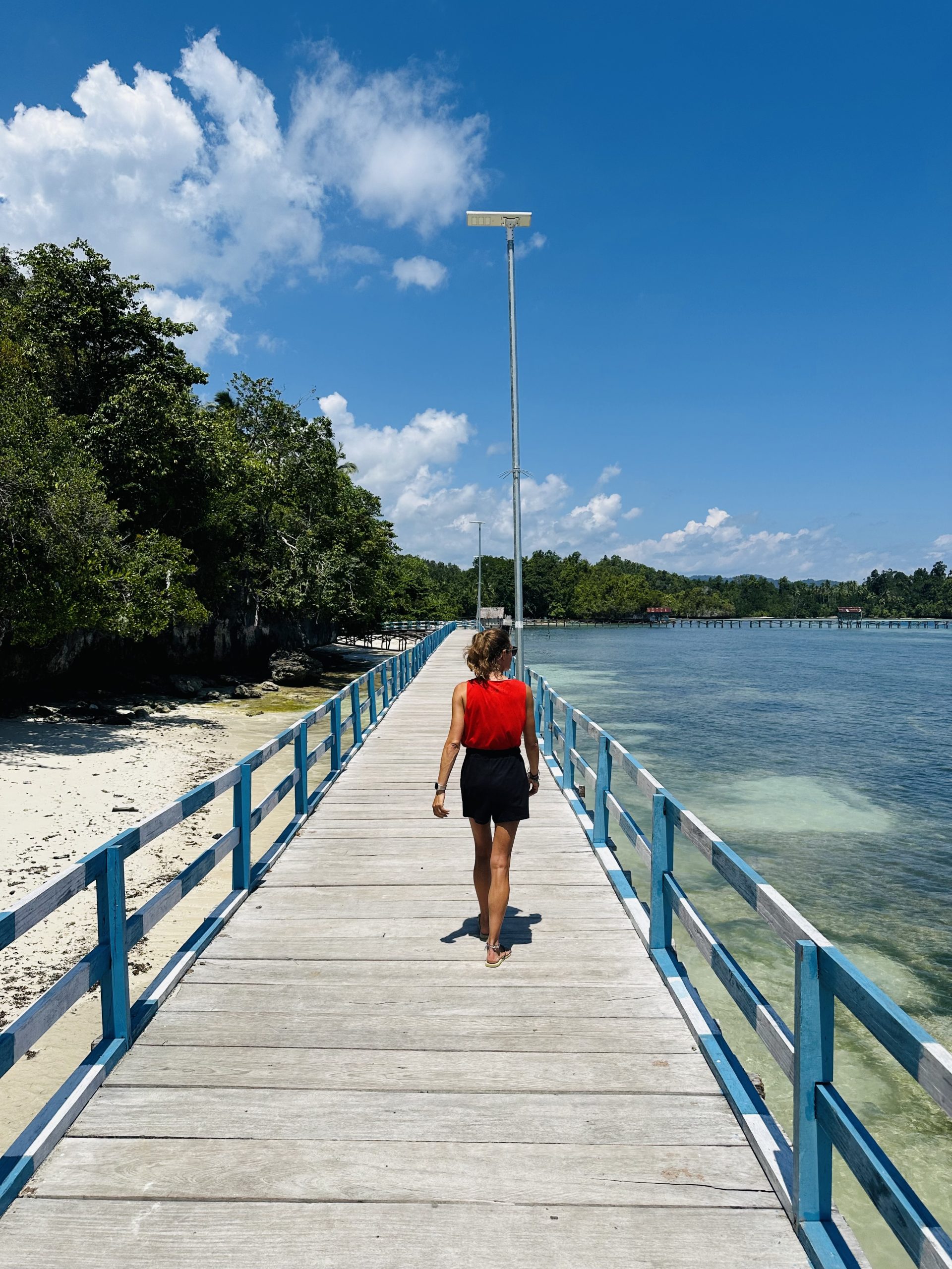 Keine fünf Minuten Fußweg von unserem Homestay liegt das kleine Dorf Yenbesar. Hier gibt es eine Schule, eine Kirche und auch zwei Mini-Shops, bei denen du dir Cola oder Kekse kaufen kannst. Die Bewohner waren alle total freundlich und jeder grüßt und lächelt. Das Dorf ist in zwei Teile unterteilt, wobei der westliche Teil etwas einfacher aus normalen Hütten besteht. Über einen Steg gelangt man zum östlichen Teil, der deutlich “schicker” wirkt: die Häuser sehen richtig ordentlich aus und haben Veranda und Vorgarten. Ganz am Ostende gibt es noch eine Lagune mit tollem grünen Wasser.