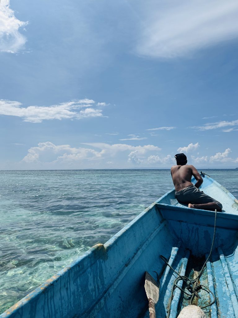 Da wir sechs Nächte in unserem Homestay übernachtet haben, gab es für uns einen Schnorchelausflug for free. Und diesen haben wir an die berühmte Friwen Wall gemacht. Die kleine Insel Friwen liegt gegenüber von Gam, ca. 1000 Meter von unserem Homestay entfernt. Dahinter liegt noch die unbebaute Insel Friwenbonda, an welcher die Friwen Wall zu finden ist. Was ist denn nun diese Friwen Wall? Der Fels der Insel geht einfach unter Wasser weiter, ist mit Korallen bedeckt und stürzt dann wie eine Wand in die Tiefen des Meers hinab – die Wall.