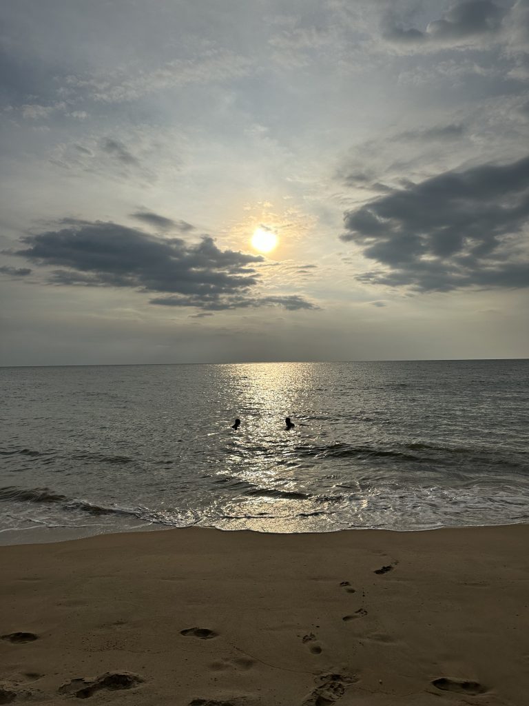 Am nächsten Tag haben wir Mama und Papa an ihrem Hotel eingesammelt und sind am Strand Richtung Norden gewandert. Wie gesagt: die Küste besteht aus einem endlos langen Strand – perfekt also zum spazieren gehen. Nach 5 km war für uns dann aber Schluss; denn es hat ordentlich angefangen zu schütten 😅