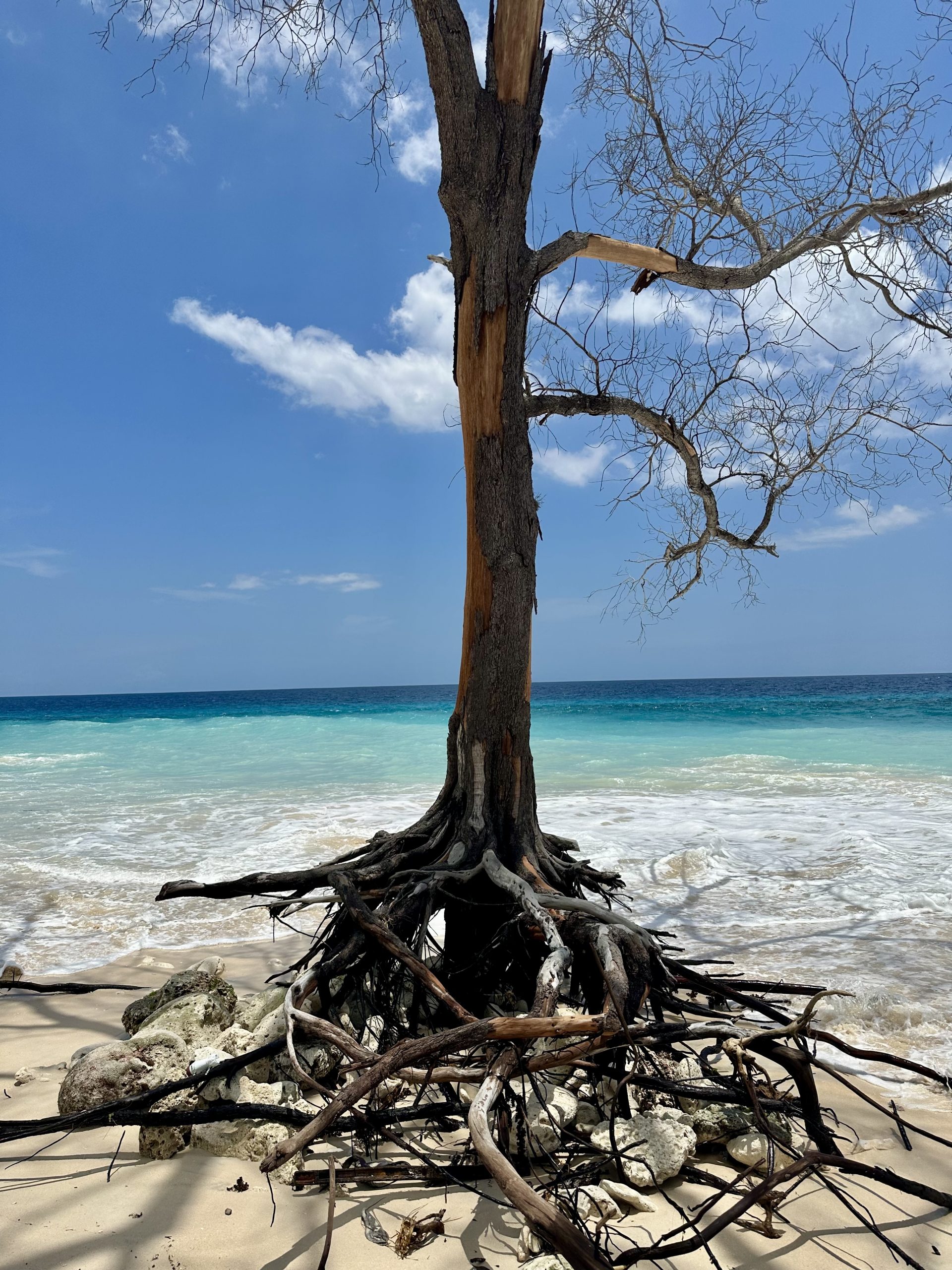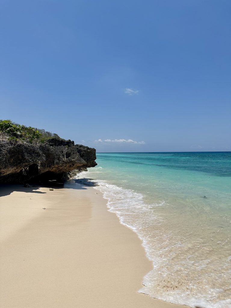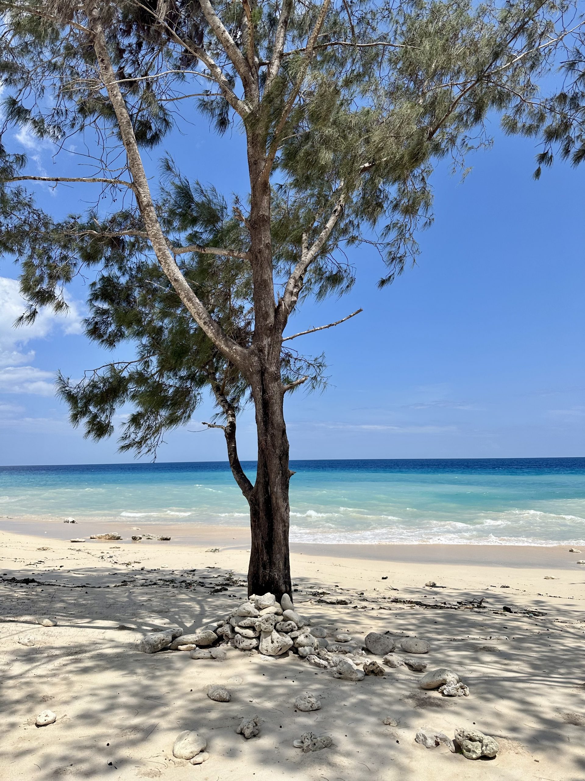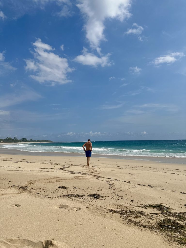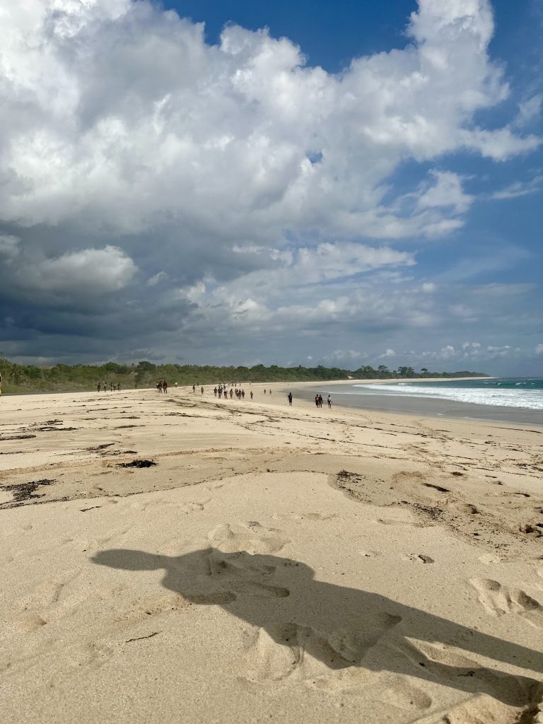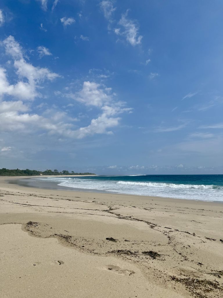 Direkt vor unserer Zimmertür liegt ein wunderschöner Naturstrand, den wir am ersten Tag erstmal entlang geschlendert sind. Selten haben wir einen so ursprünglichen, schönen Strand gesehen. Hier ist wirklich noch nichts gebaut und man kann bis ins nächste Dorf am Strand entlanggehen. Ich liebe es ja, wenn Bäume am Strand stehen. Das gibt dem ganzen irgendwie etwas besonderes. Zum Baden ist der Strand aber nicht ganz so gut geeignet, weil schon relativ am Anfang im Wasser große Felsen sind. Bei den Wellen, die wir hatten, kann das dann recht gefährlich werden.