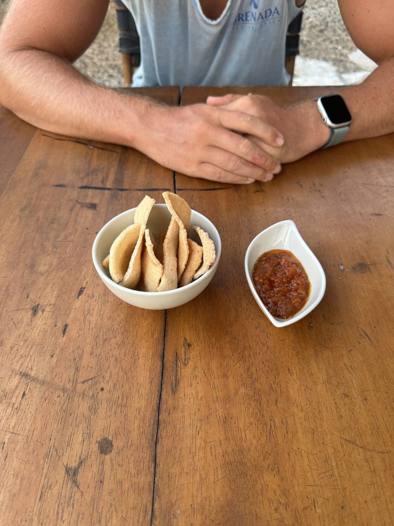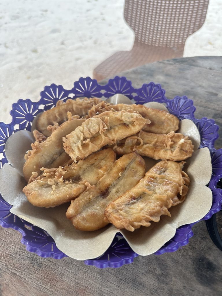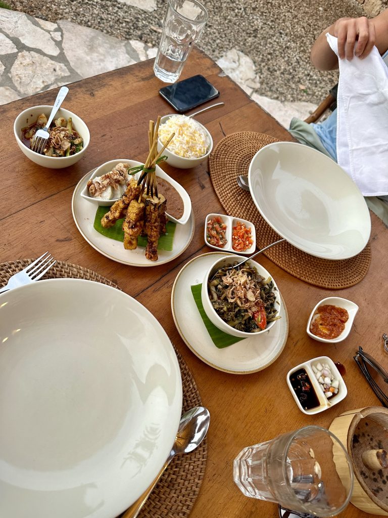 Das Makan Dulu ist ein gemeinnütziges Restaurant in Waitabula, in dem junge Sumbanesen für die internationale Sterneküche ausgebildet werden. Das Ganze ist komplett Non-Profit. Die Jugendlichen träumen davon einmal in den Sternerestaurants dieser Welt arbeiten zu dürfen. Wir finden das Konzept klasse und haben dem daher mal eine Chance gegeben. Und das hat sich gelohnt! Das Essen war wirklich hervorragend. Wir hatten Sate Tofu mit Corn-Reis, Veggies, Sambal und Reiskuchen und Rumpu Rampe – das besteht aus Maniokblättern, grüner Papaya, Papayablüten und Banana Flower. Richtig lecker.